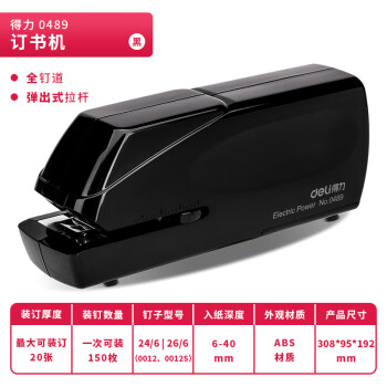 得力(deli)雙電源電動(dòng)訂書機(jī) 電子自動(dòng)裝訂訂書器 適配24/6或26/6訂書釘 辦公用品 黑色0489