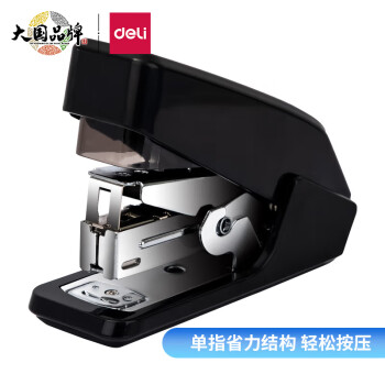 得力(deli)單指按壓省力訂書機(jī)/訂書器 適配12#訂書釘 可裝50枚釘 黑色0466(不含釘)