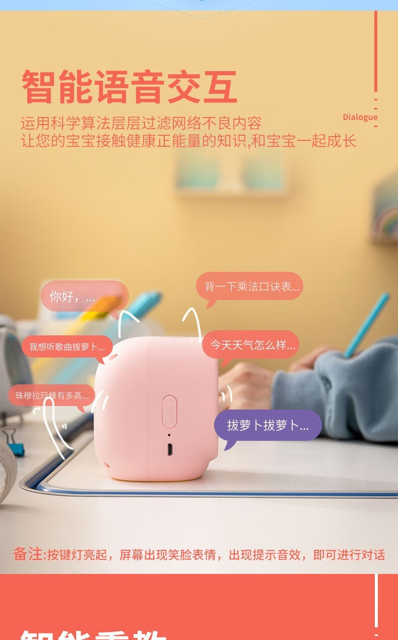 得力/deli 83650 座鐘 學(xué)生電子鬧鐘AI智能語音互動迷你多功能充電鬧鐘可愛卡通兒童禮物