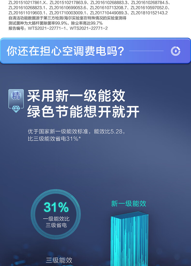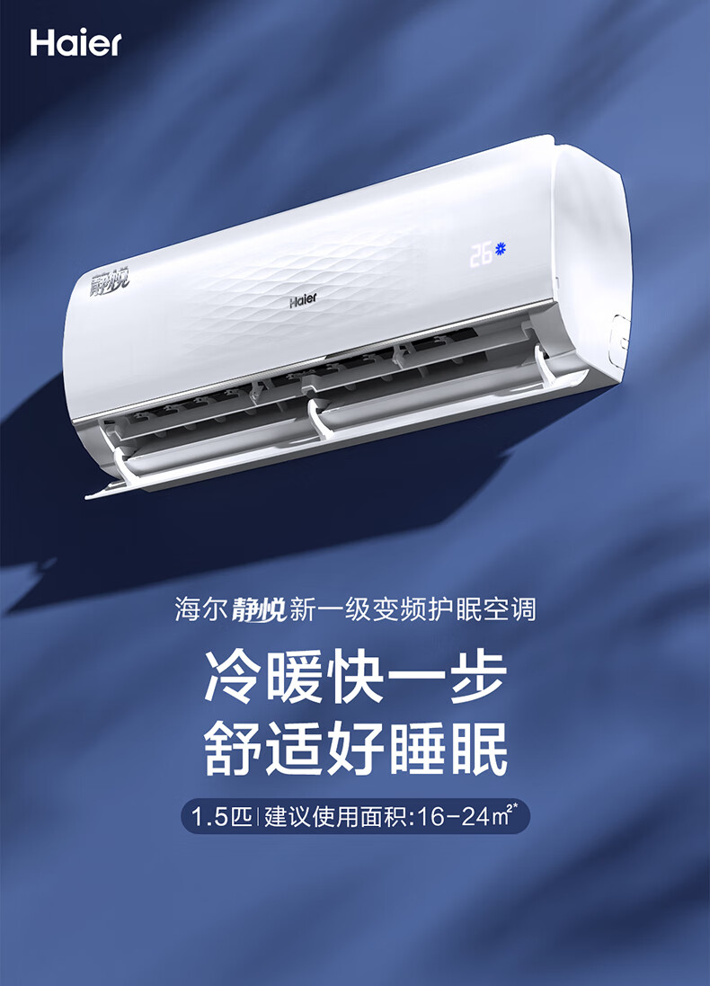 海爾/haier KFR-35GW/B1KDA81U1 壁掛式空調(diào) 1.5匹 變頻 冷暖 新一級能效