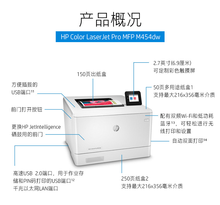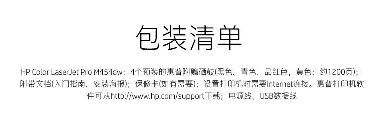 惠普/HP M454dw A4 彩色打印機 彩色打印 液晶顯示屏 自動雙面打印 無線連接