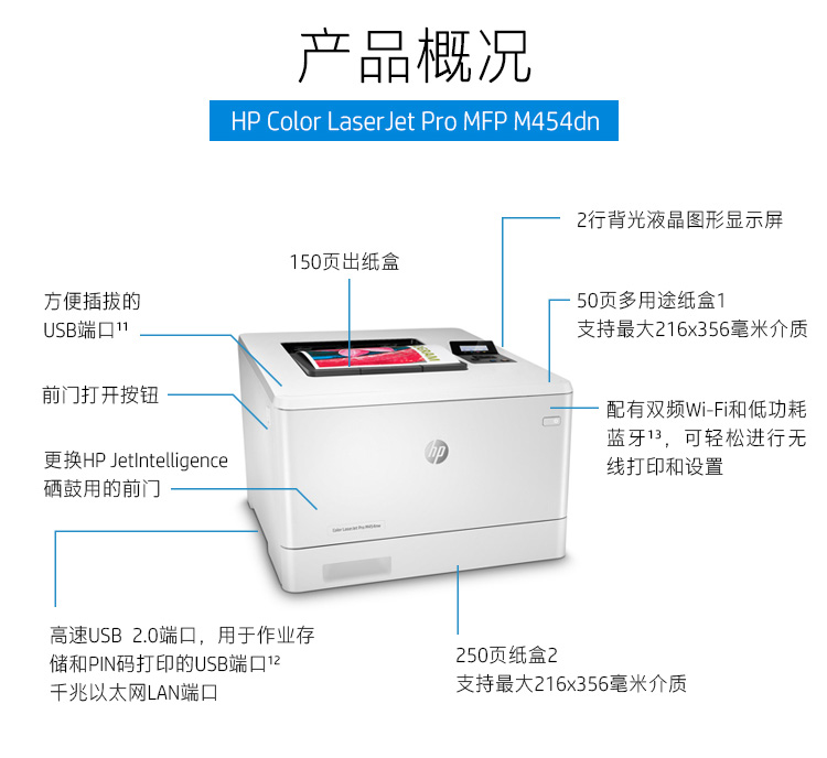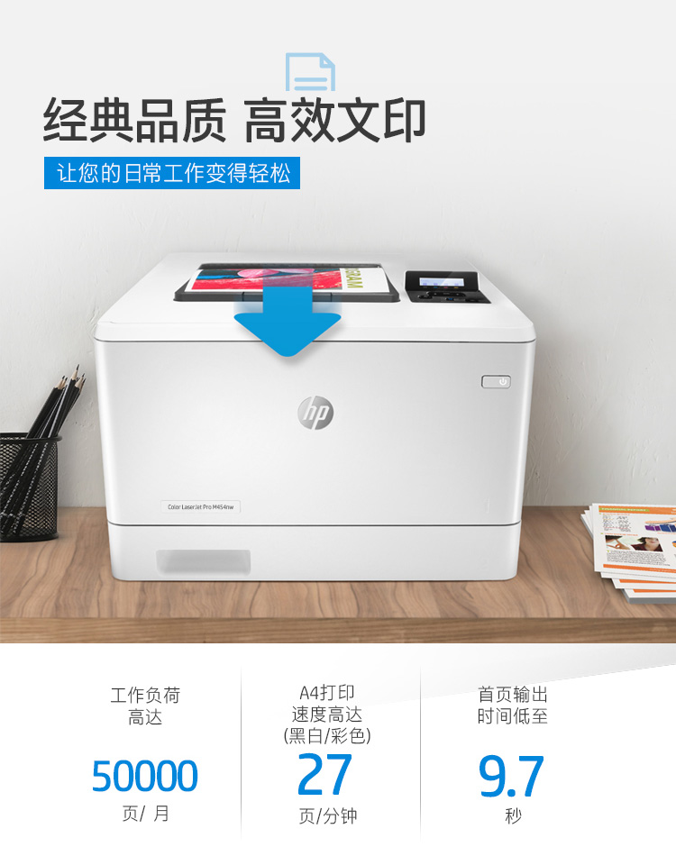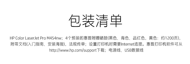 惠普(HP)M454nw A4彩色激光單功能打印機(jī) 有線網(wǎng)絡(luò)/無線連接(商用)