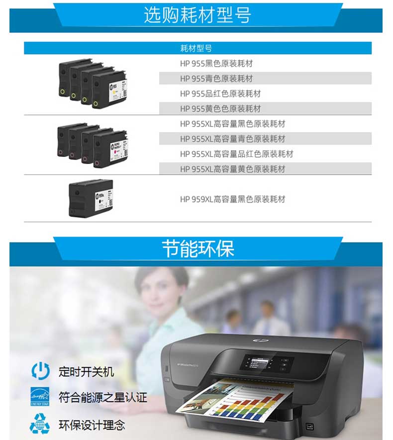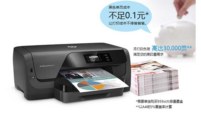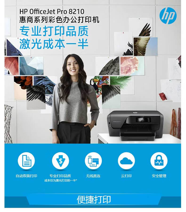 惠普(HP)OfficeJet Pro 8210 彩色辦公無線打印機 自動雙面打印 無線直連 單頁低成本