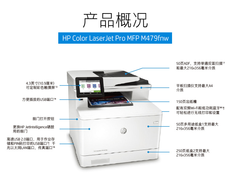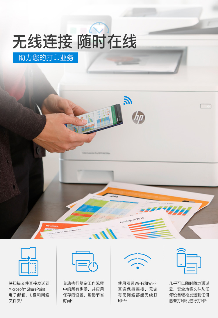 惠普/HP M479fnw A4 彩色打印機 彩色激光多功能一體機 無線打印復(fù)印掃描傳真四合一 自動輸稿器