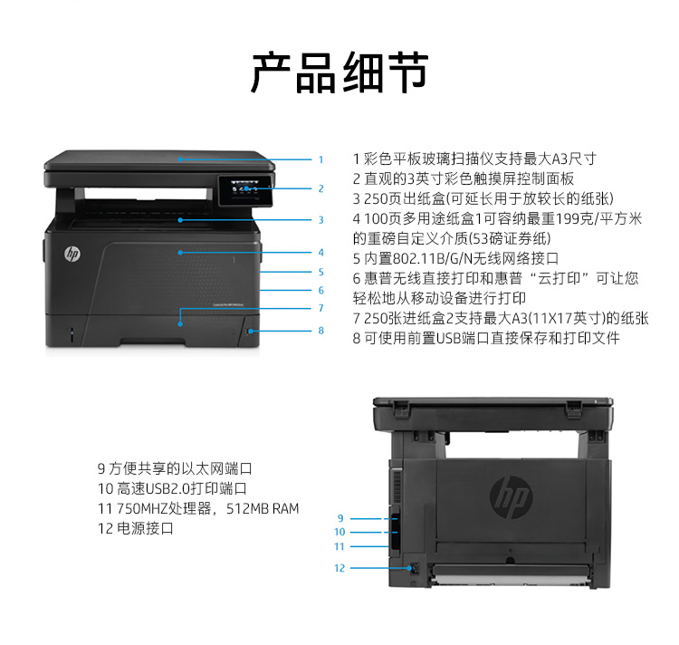 惠普(HP)M435nw黑白激光A3數(shù)碼復合機工作組 多功能 打印 復印 掃描 無線連接