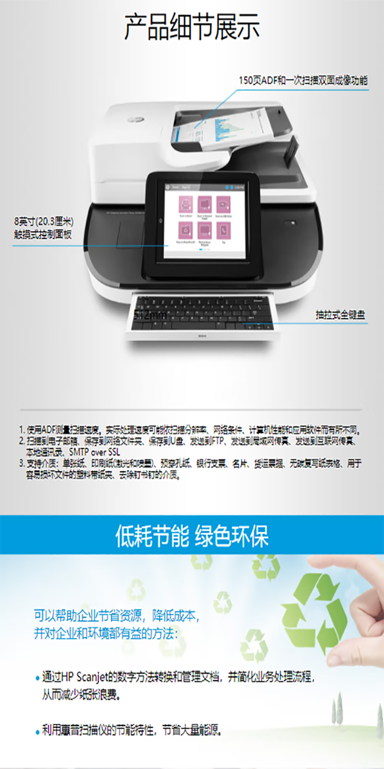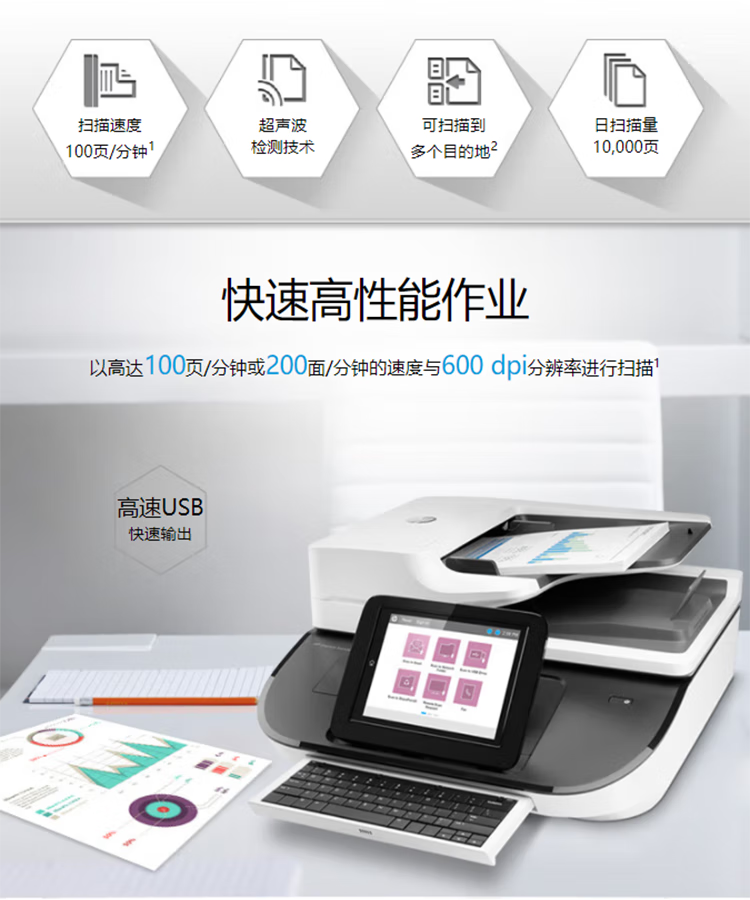 惠普(HP)Digital Sender Flow 掃描儀 8500 fn2 文檔掃描工作站 自動雙面掃描 掃描速度100頁/分鐘