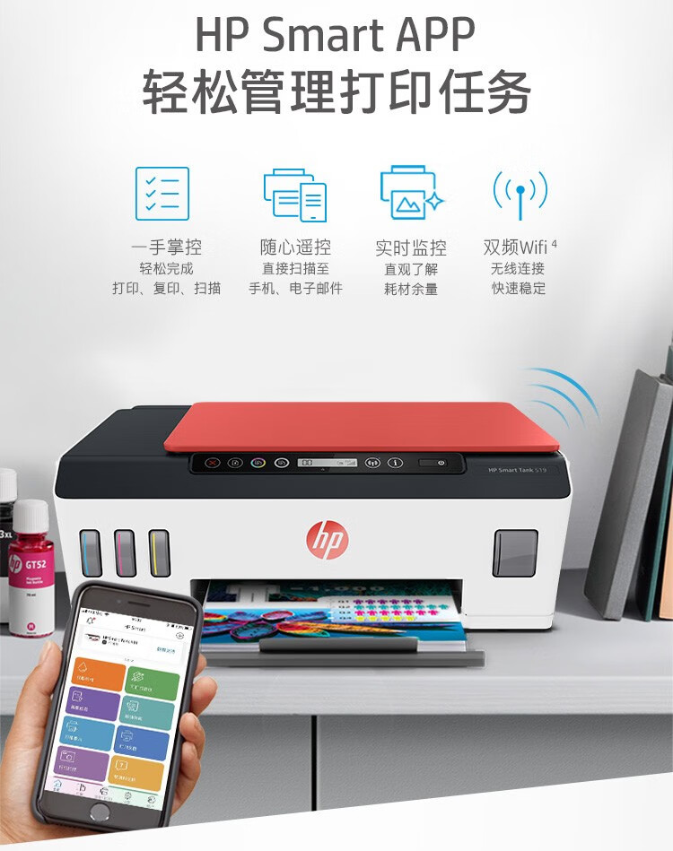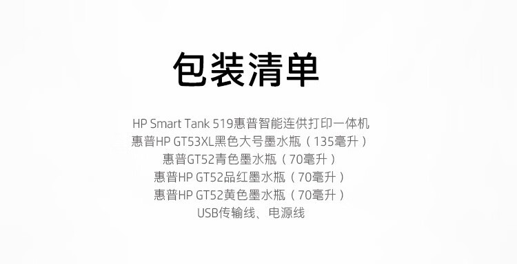 惠普(HP) 打印機(jī)A4彩色噴墨 連供 復(fù)印機(jī)掃描機(jī)一體機(jī) 無線手機(jī)打印 家用 519 同518 Tank 519(墨倉內(nèi)置無線連接 )
