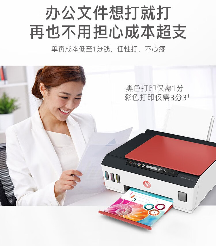 惠普/HP Tank 519 A4 彩色打印機(jī) A4彩色噴墨 連供 復(fù)印機(jī)掃描機(jī)一體機(jī) 無線手機(jī)打印