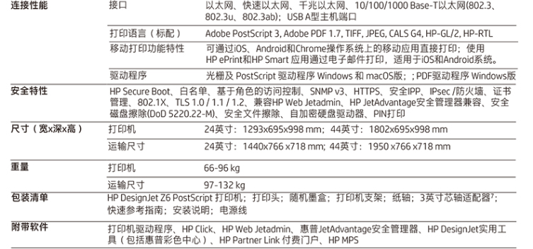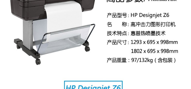 惠普/HP DesignJet Z6 A3 彩色打印機(jī) 系列繪圖儀 6色大幅面 GIS廣告效果圖影像照片打印機(jī) Z6 24英寸 PS 6色繪圖儀(A1)
