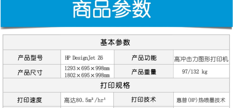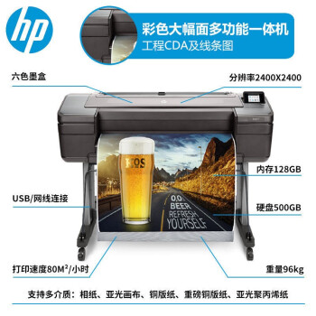 惠普(HP)DesignJet Z6 系列繪圖儀 6色大幅面 GIS廣告效果圖影像照片打印機(jī) Z6 24英寸 PS 6色繪圖儀(A1)