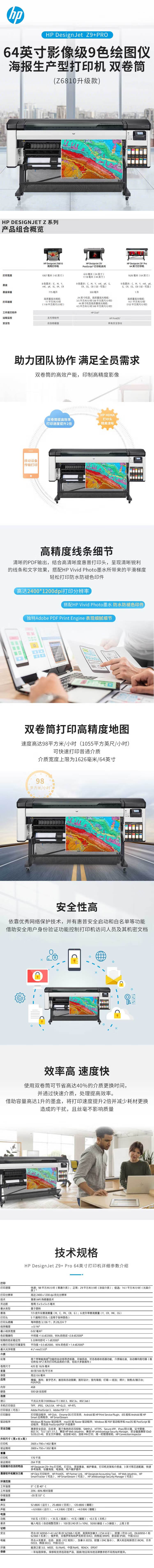 惠普/HP Z9+Pro A3 彩色打印機(jī) 作訓(xùn)地圖噴繪機(jī)宣傳海報專用繪圖儀 64英寸 單卷筒