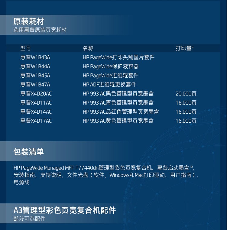 惠普/HP P77440dn A3 彩色打印機(jī) 管理型彩色頁寬復(fù)合 標(biāo)配
