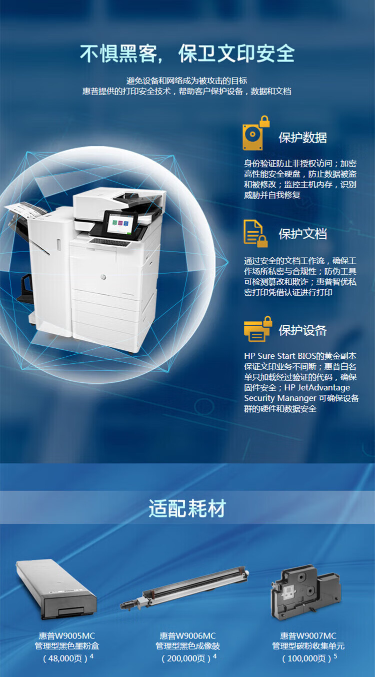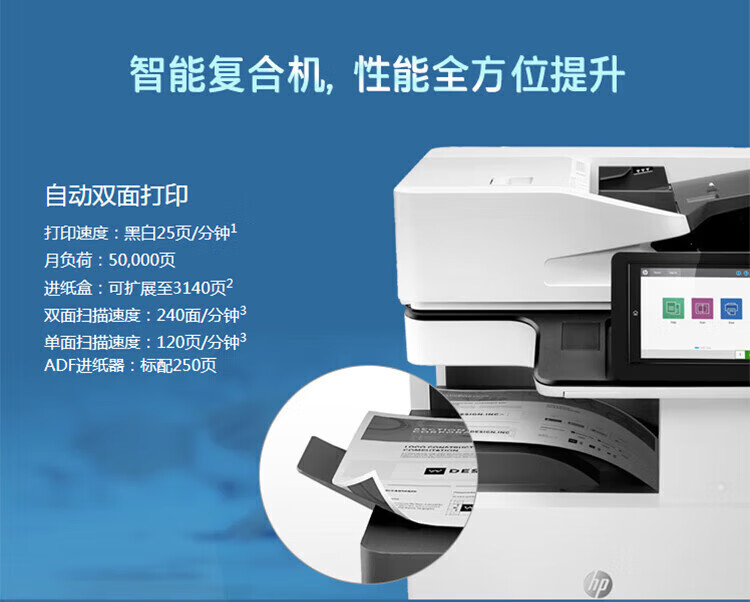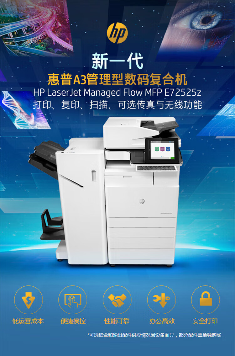 惠普(HP)MFP E72525z A3黑白管理型數(shù)碼復(fù)合機(jī)(打印、復(fù)印、掃描)雙層紙盒+雙面網(wǎng)絡(luò)(1年上門服務(wù))