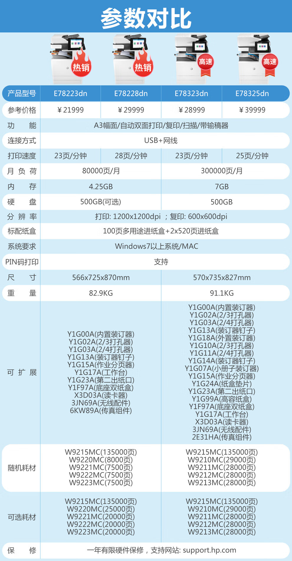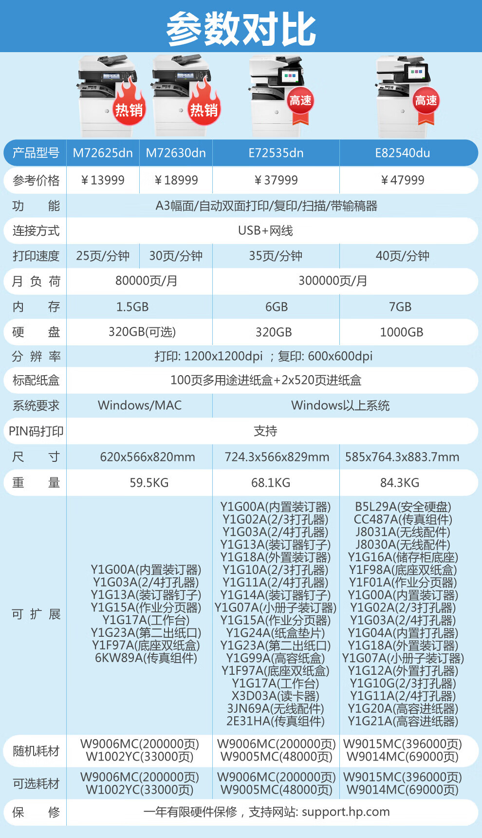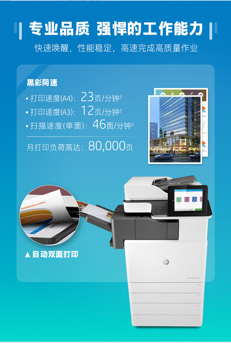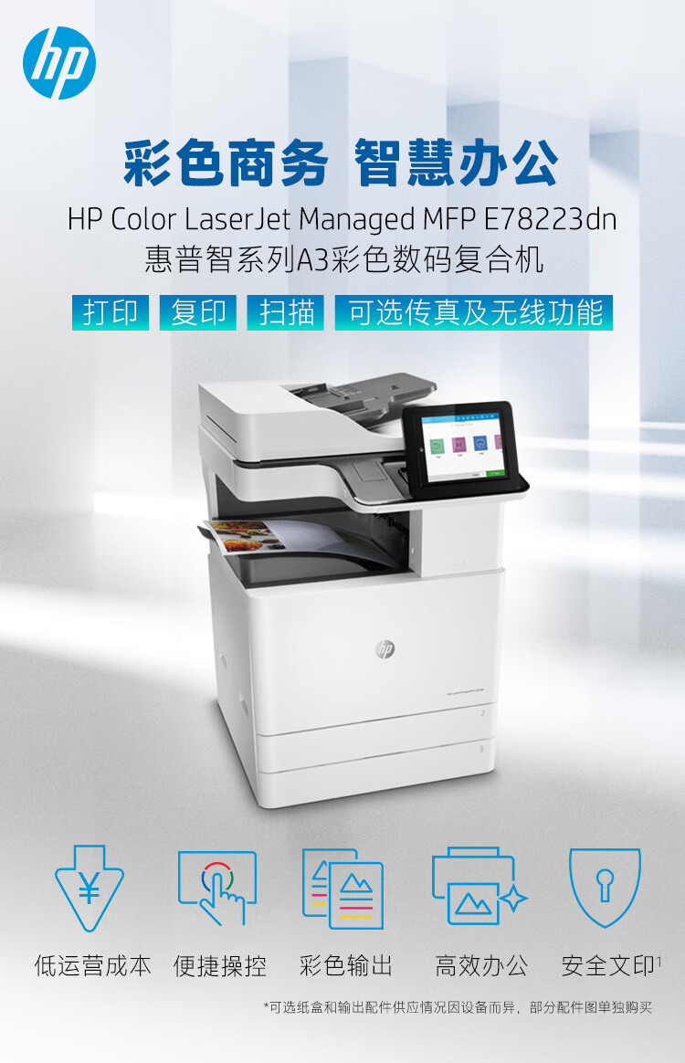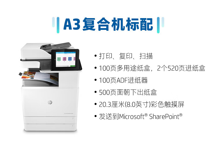 惠普(HP)A3激光復合機打印機辦公商用大型一體機復印機掃描機 A3黑白 E82550z(50頁/分鐘) 官方標配