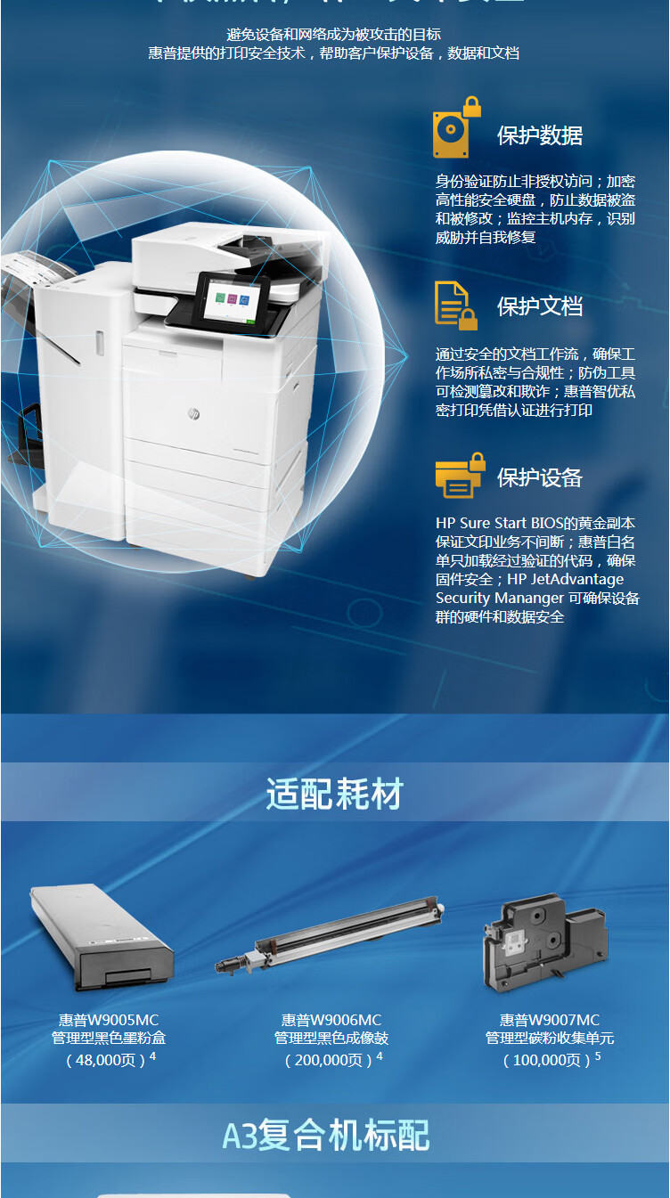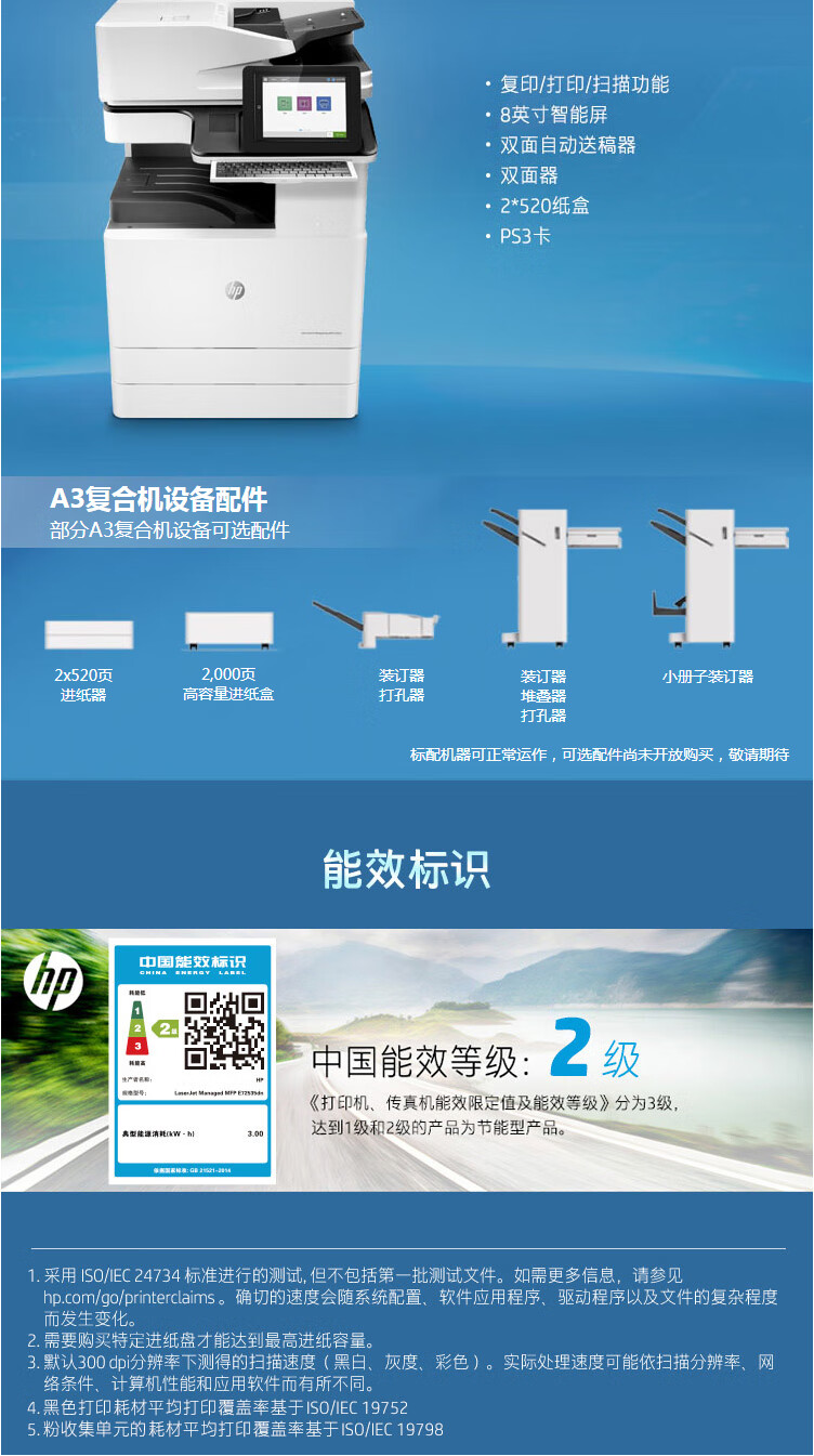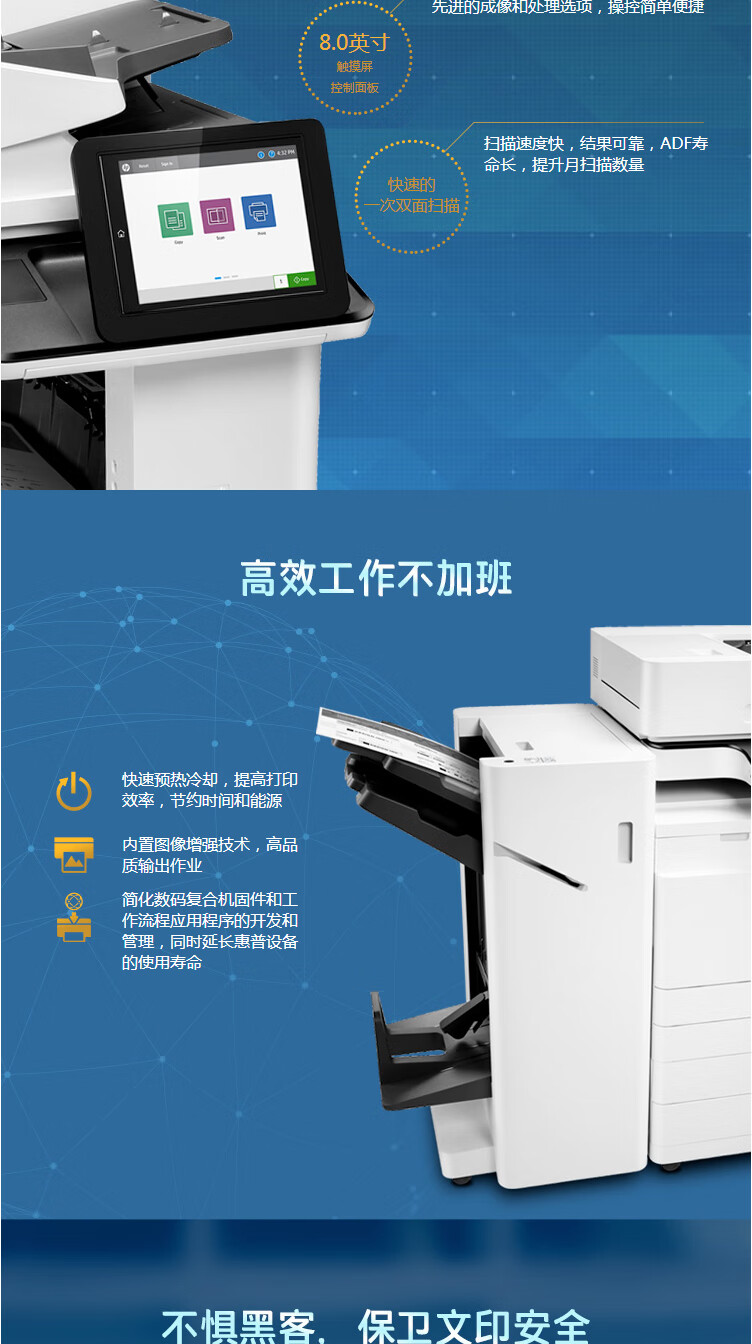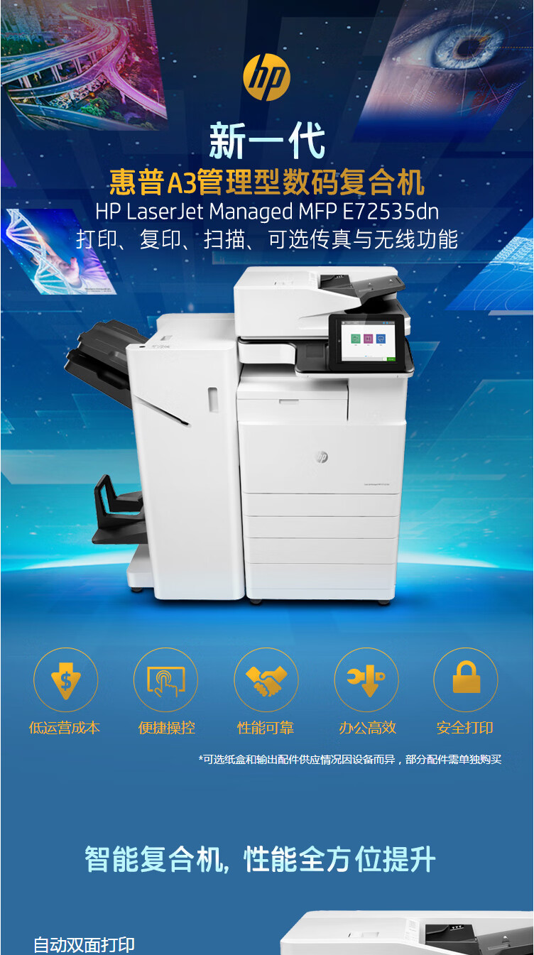 惠普/HP MFP E72535dn A3 黑白打印機 自動雙面打印 管理型數(shù)碼復(fù)合機多功能一體機 管理型數(shù)碼復(fù)合機(打印、復(fù)印、掃描;傳真可選