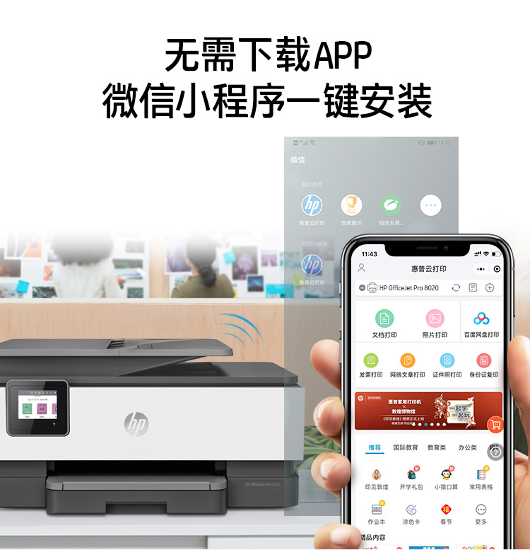 惠普(HP)8020四合一彩色多功能一體機 電子發(fā)票打印機(高速雙面打印,微信打印,明星機型6960升級款)