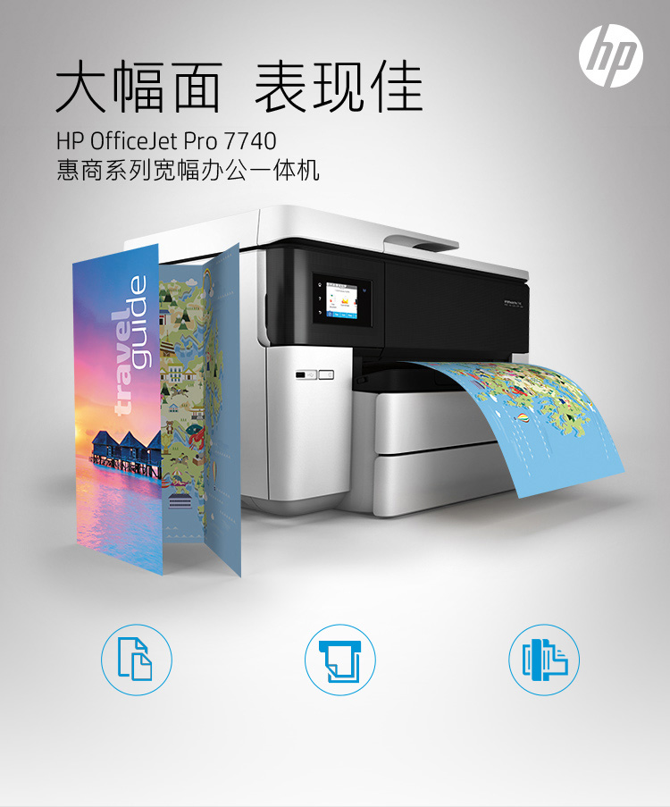 惠普/HP OfficeJet Pro 7740 A3 彩色打印機(jī) 惠商系列寬幅辦公一體機(jī)(打印、復(fù)印、掃描、傳真、無線)