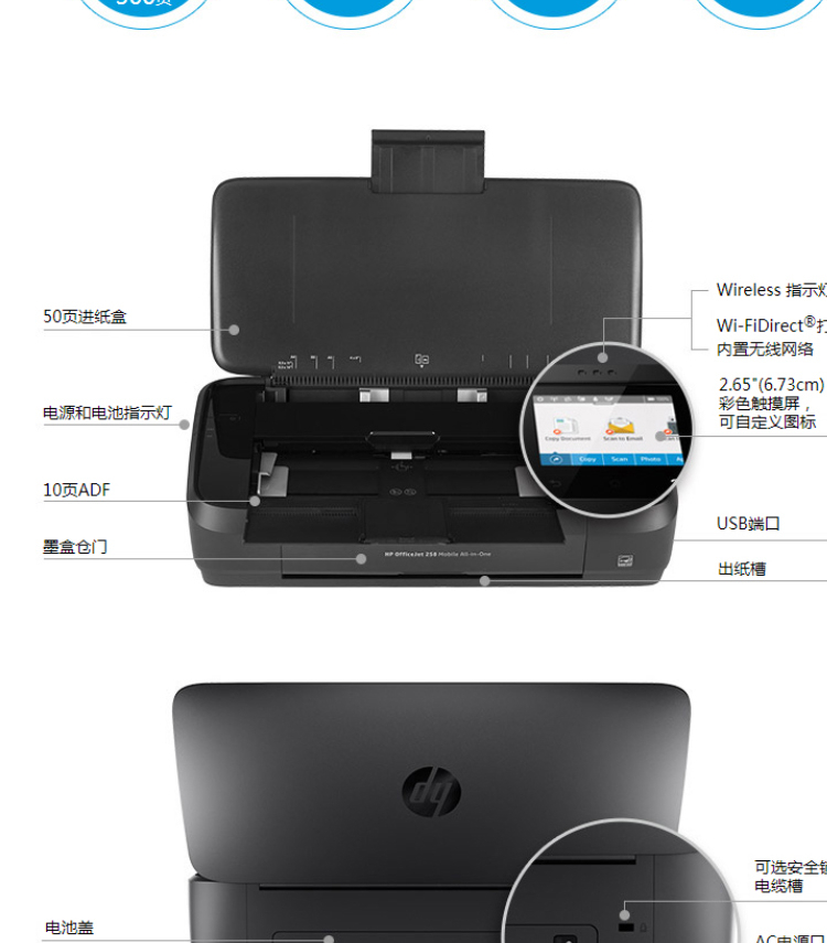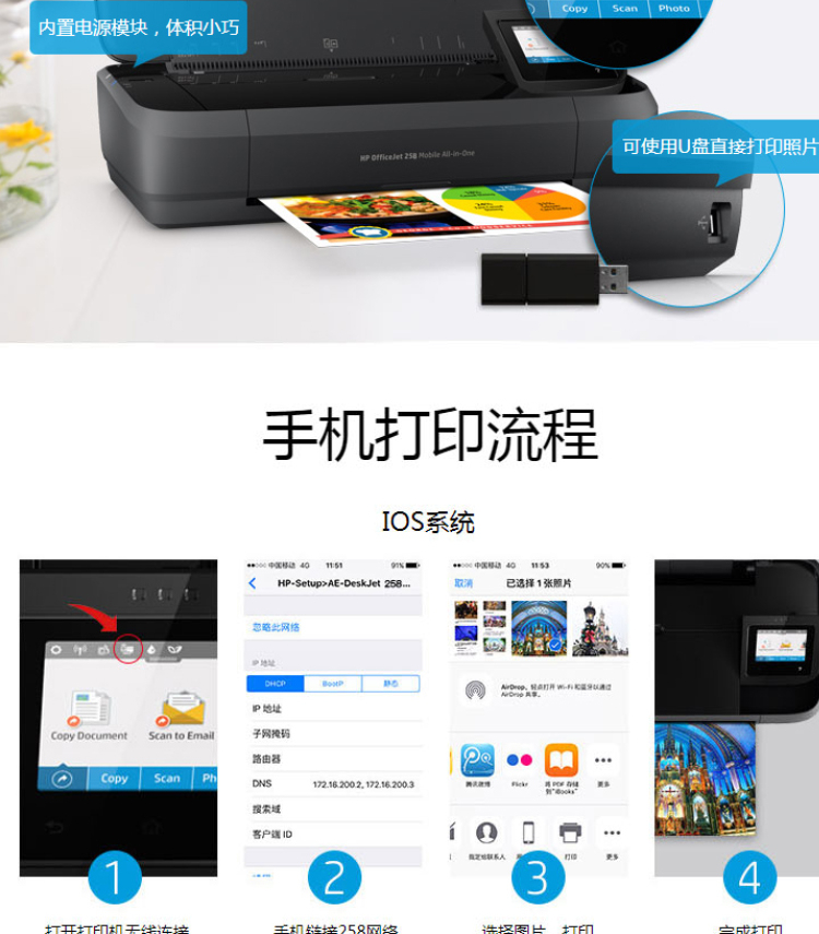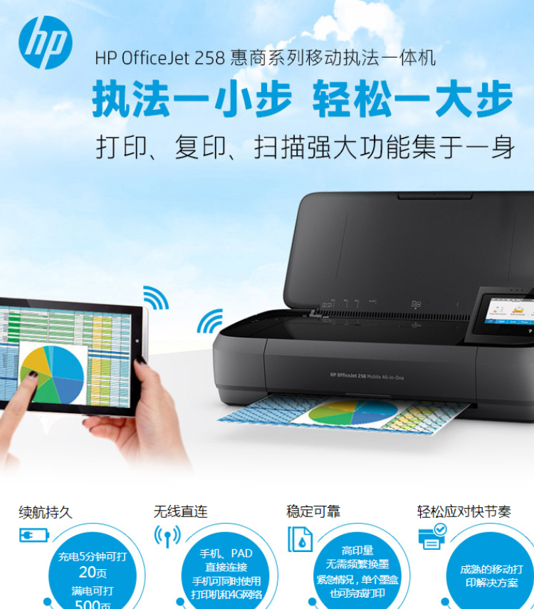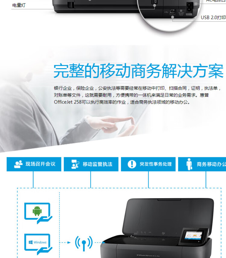 惠普(HP)OfficeJet 258 A4 彩色單功能移動(dòng)便攜式打印一體機(jī) 無(wú)線打印