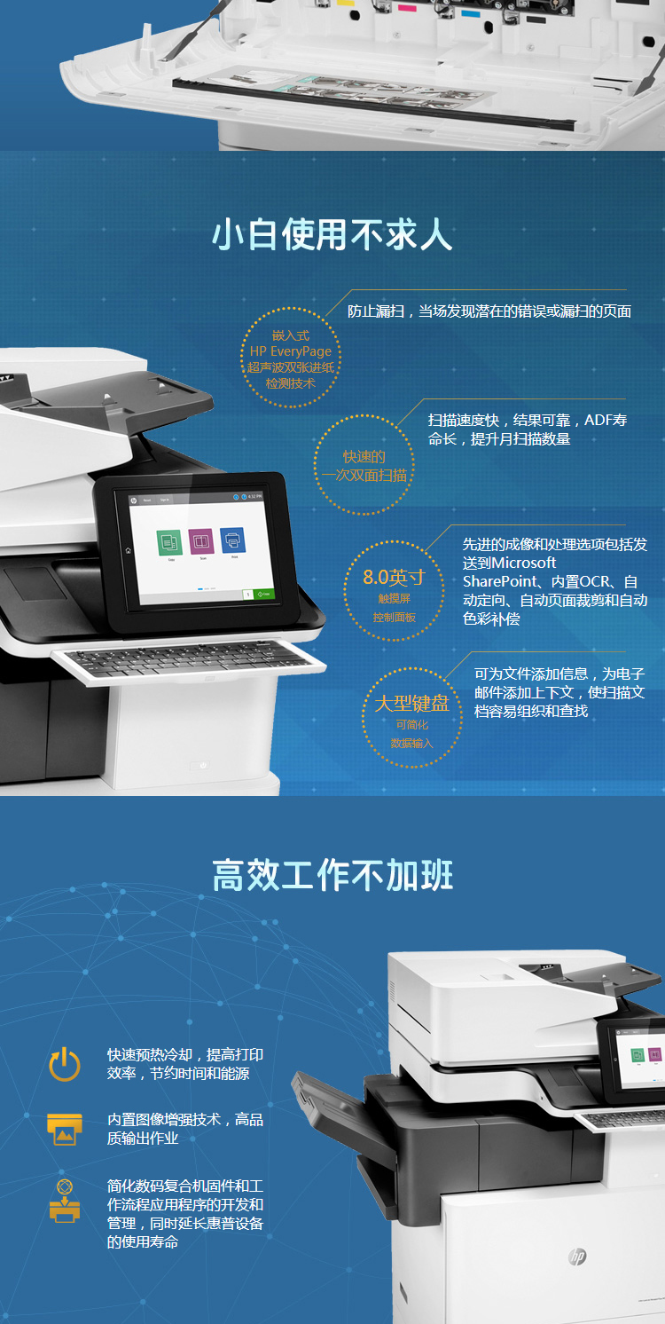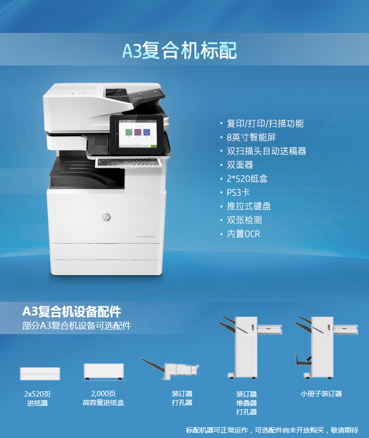 惠普(HP)MFP E87640z A3管理型彩色激光數(shù)碼復(fù)合機(jī) 打印 復(fù)印 掃描 雙面一次掃描 企業(yè)級(原廠1年上門)
