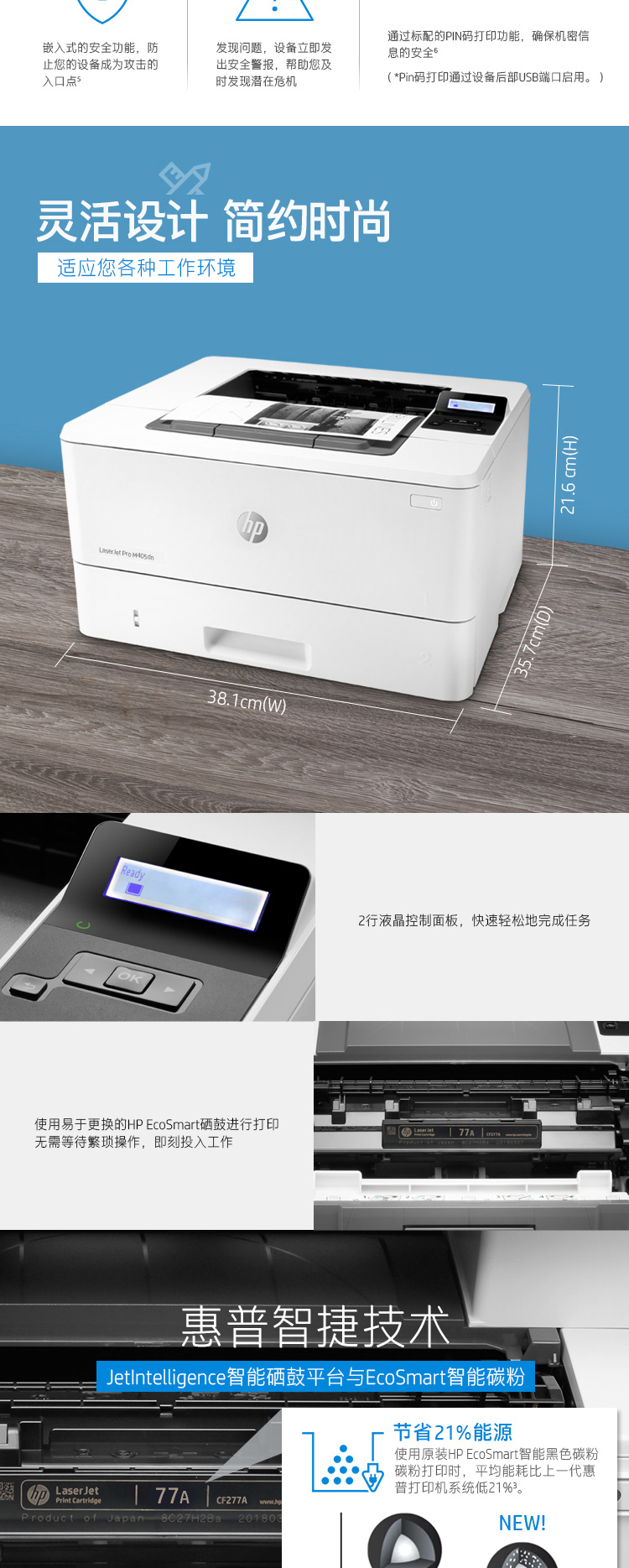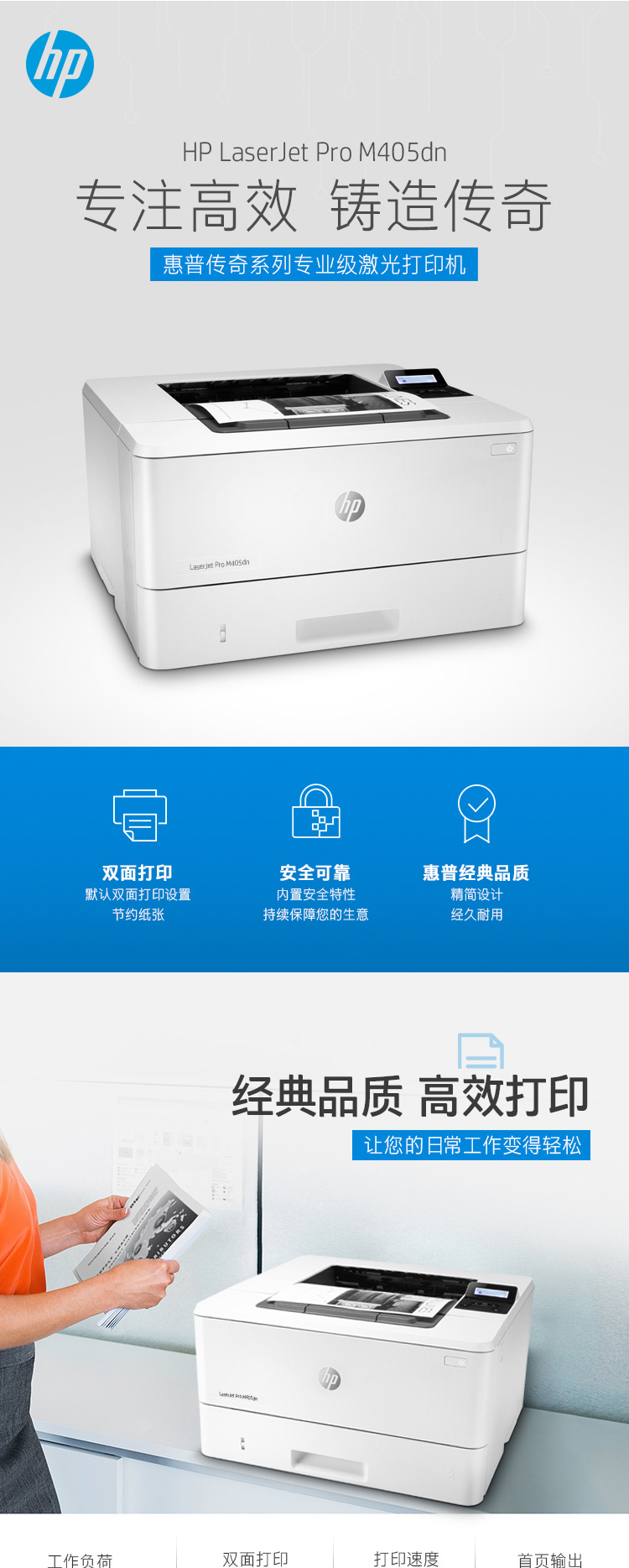 惠普(HP)M405dn激光黑白高速打印機(jī) A4自動(dòng)雙面打印 有線網(wǎng)絡(luò)連接商用辦公
