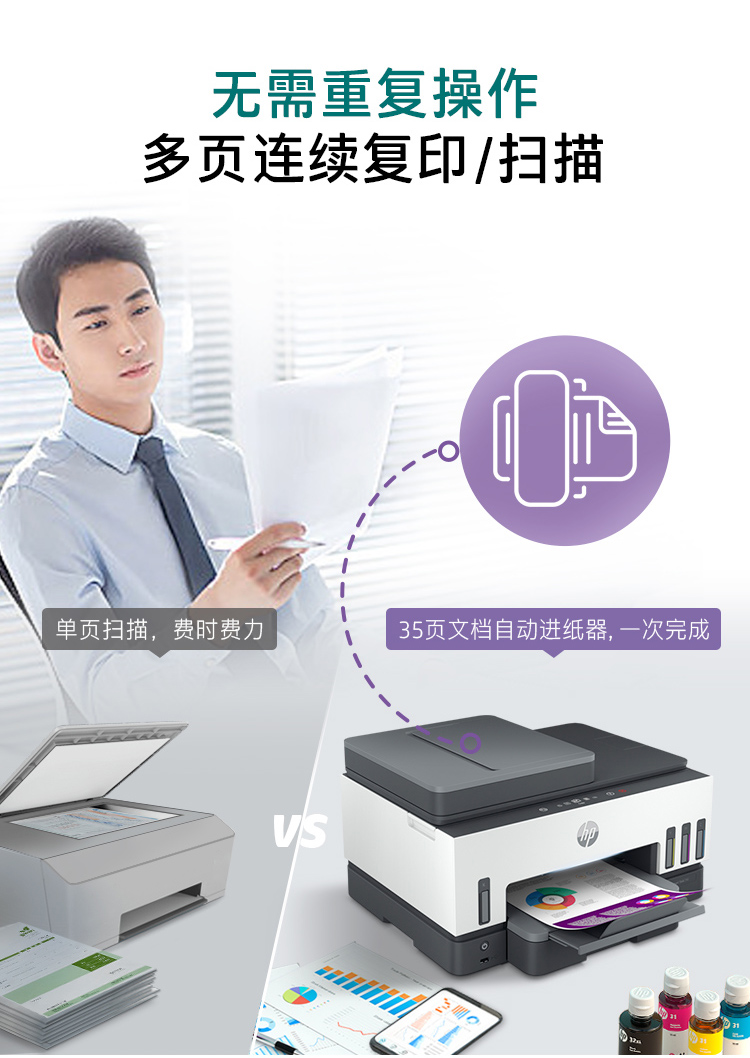 惠普(HP) 打印機(jī) Tank 798 A4彩色噴墨復(fù)印掃描一體機(jī)雙面打印 [A4彩色一體機(jī)]798