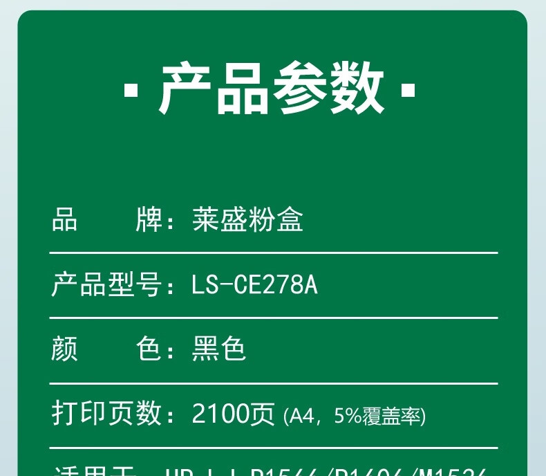 萊盛 CE278A 硒鼓 黑色 適用于HP LJ-P1566/P1606/M1536