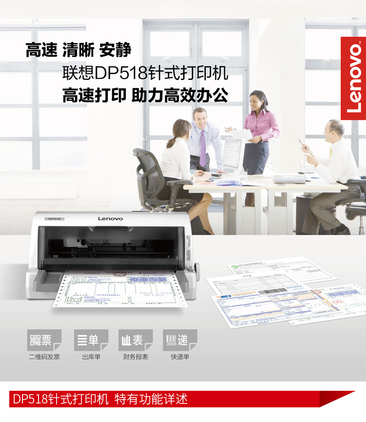 聯(lián)想(lenovo)DP518 國產(chǎn)針式平推24針高速票據(jù)打印機發(fā)票三聯(lián)單支持麒麟/統(tǒng)信/中科方德/Windows系統(tǒng)