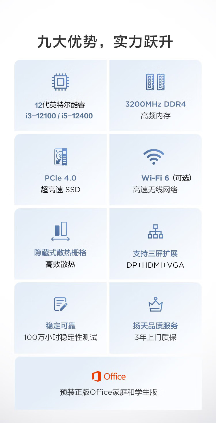 聯(lián)想(Lenovo)揚天M460臺式機12代i3-12100臺式電腦全套稅控辦公商用家用主機整機套機 定制:i3 8G內(nèi)存 512G固態(tài)丨集顯