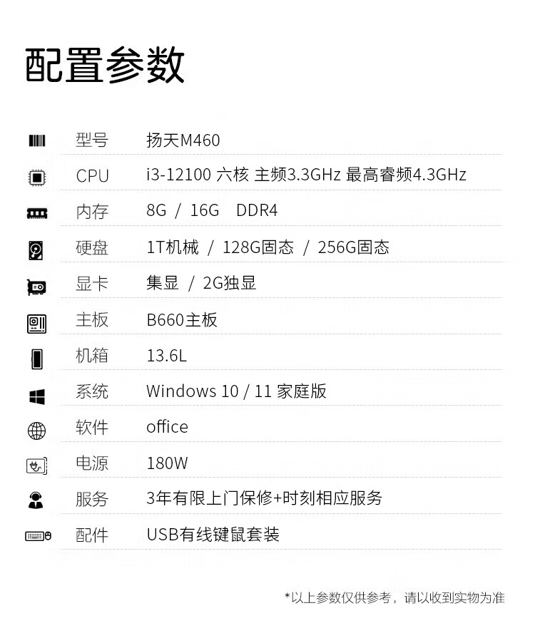 聯(lián)想/LENOVO M460 臺式計算機 揚天M460I3-12100 i3 8G內(nèi)存 512G固態(tài)丨集顯 23.8顯示器