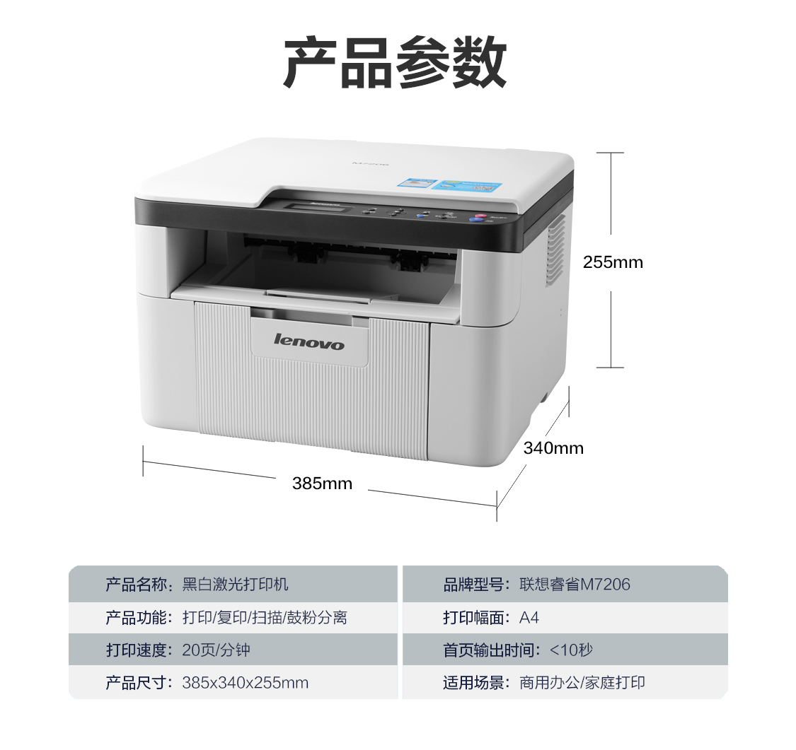 聯(lián)想(Lenovo)M7206 黑白激光打印機(jī)辦公商用家用學(xué)習(xí) 打印復(fù)印掃描多功能一體機(jī) 學(xué)生作業(yè)打印機(jī)