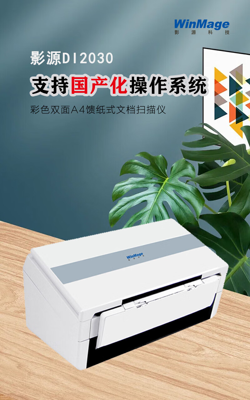 影源 A4幅面饋紙式掃描儀 DI2030 彩色雙面高速打印文檔掃描儀 自動雙面掃描 600dpi分辨率 全國產(chǎn)化掃描儀