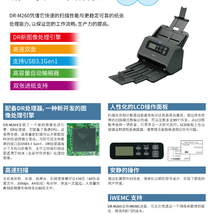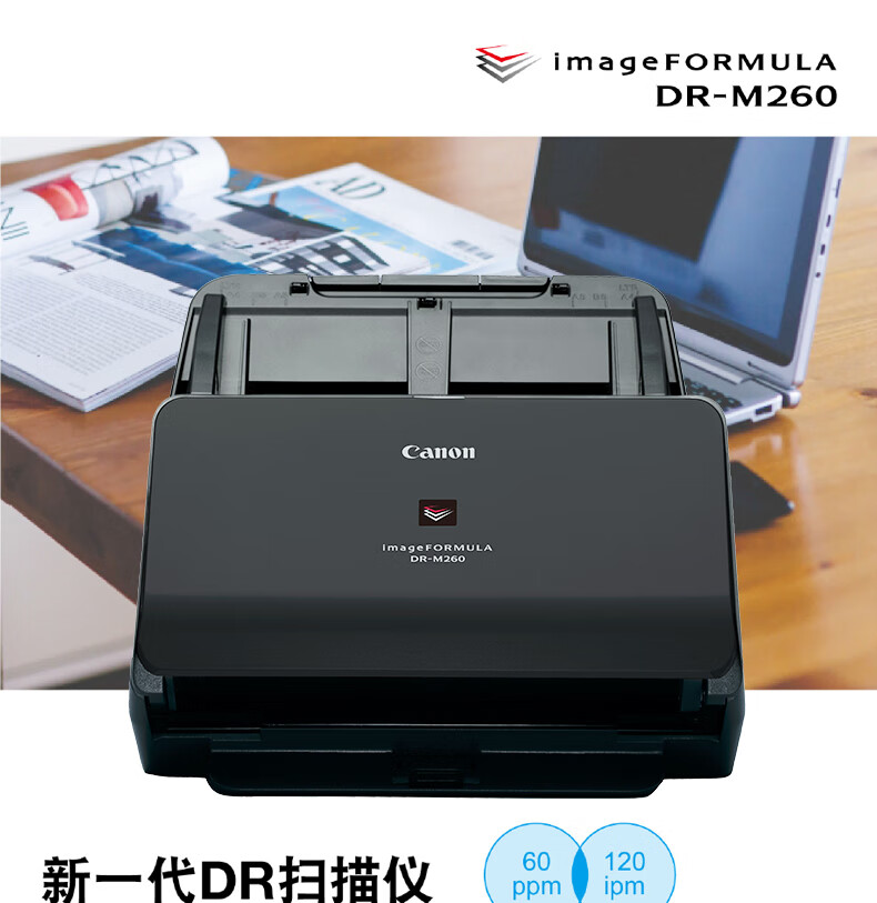 佳能(Canon)DR-M260 A4高速高清彩色掃描儀 快速連續(xù)自動雙面饋紙式掃描儀 辦公文檔卡片發(fā)票掃描儀