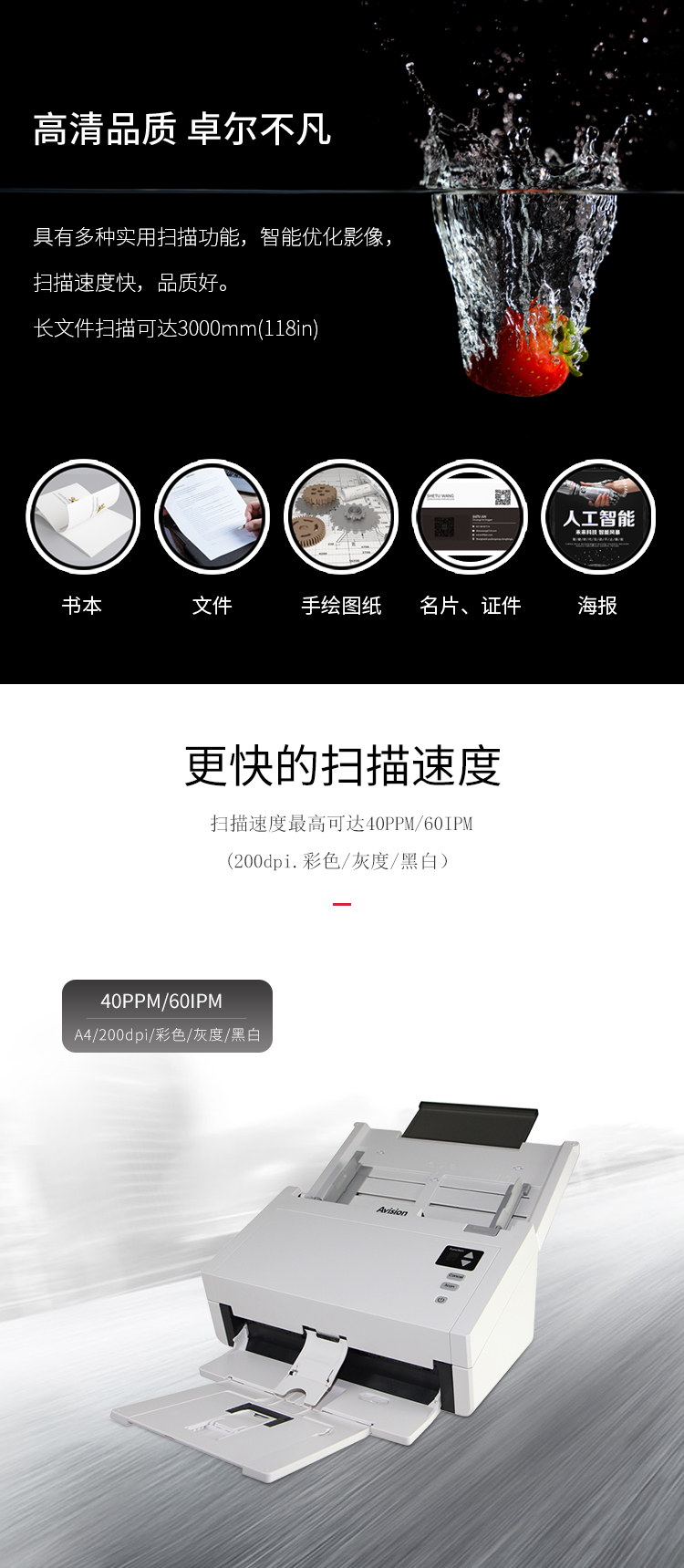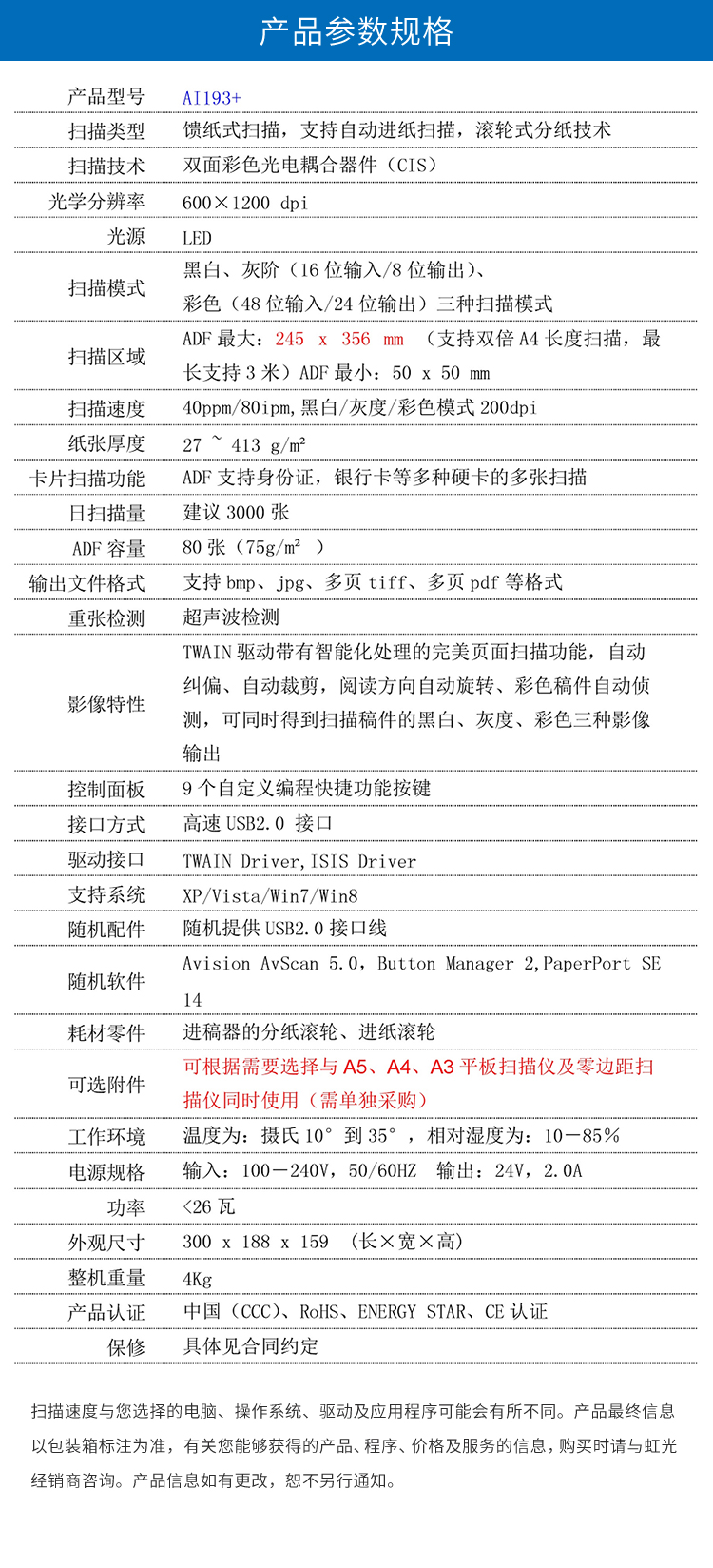 虹光(Avision)AI193+ A4饋紙式彩色雙面高速文檔掃描儀 商務(wù)掃描/自動(dòng)雙面掃描