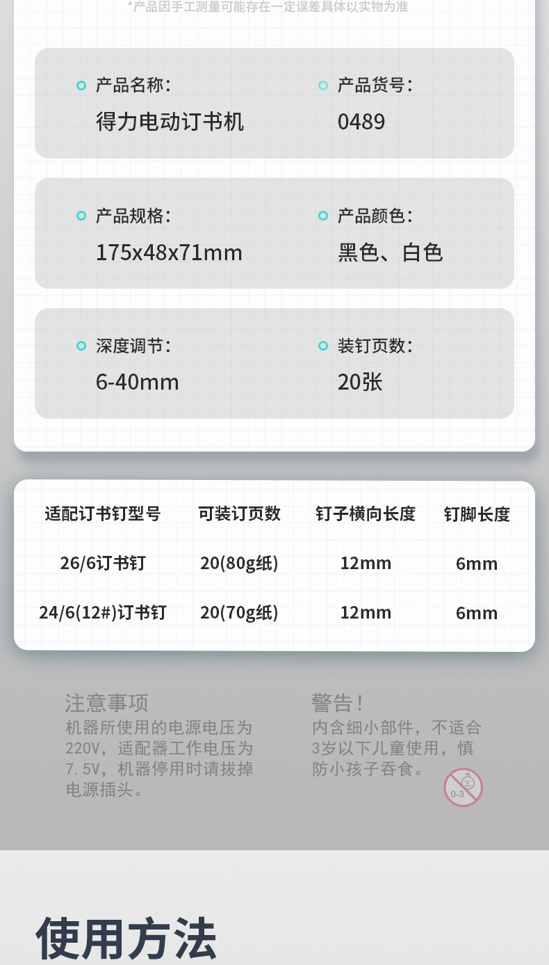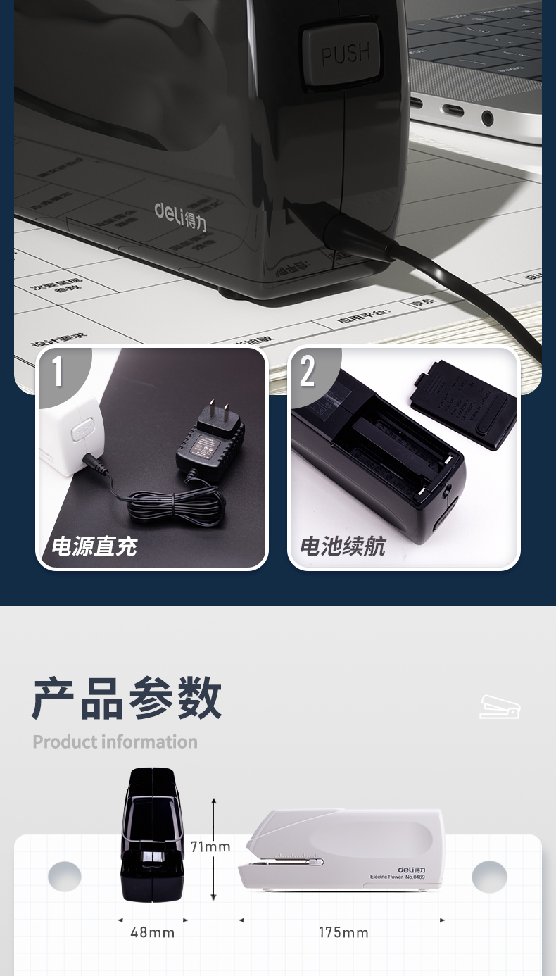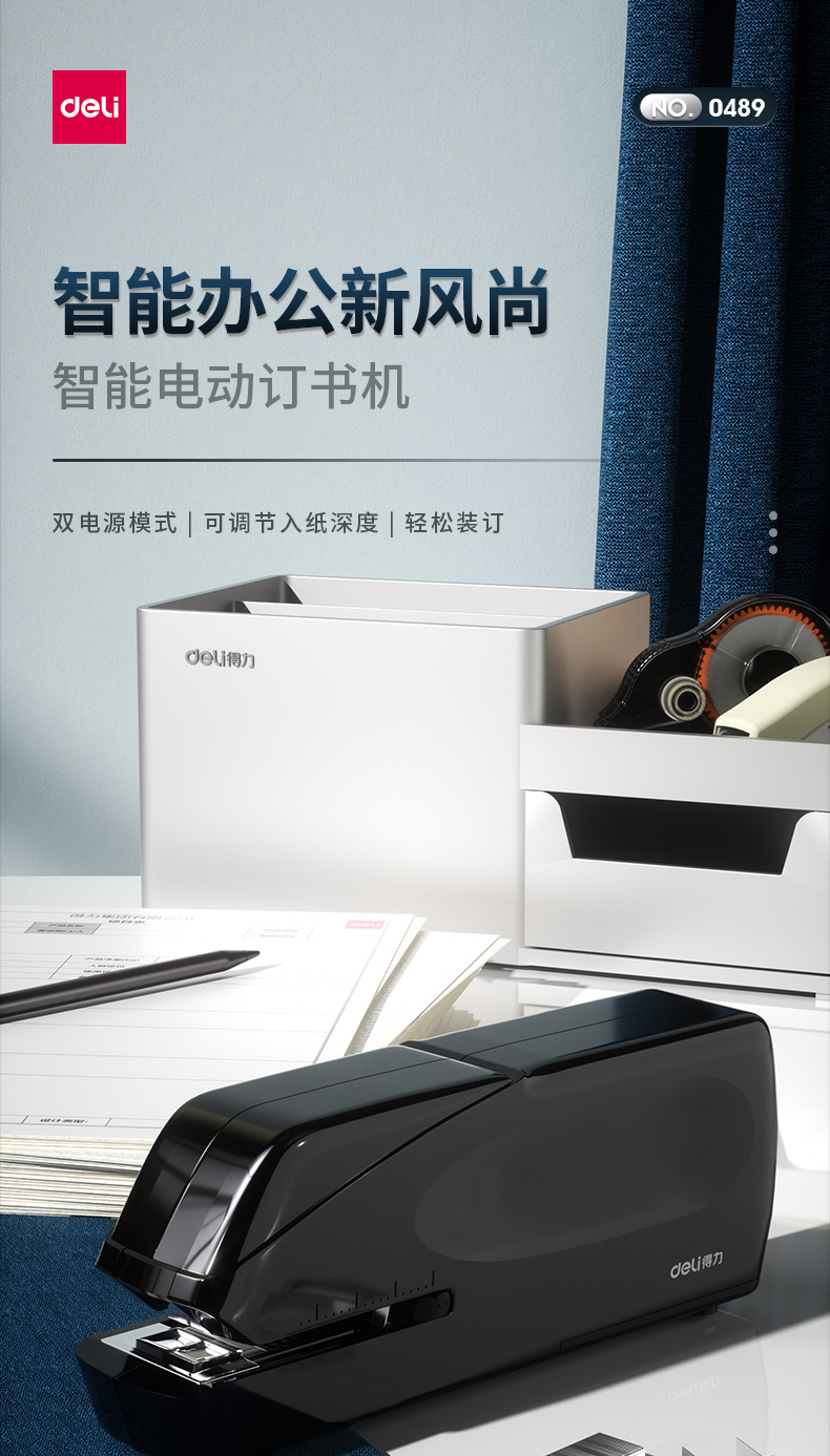 得力/deli 0489 裝訂及打孔類 雙電源電動(dòng)訂書機(jī) 電子自動(dòng)裝訂訂書器 適配24/6或26/6訂書釘 辦公用品