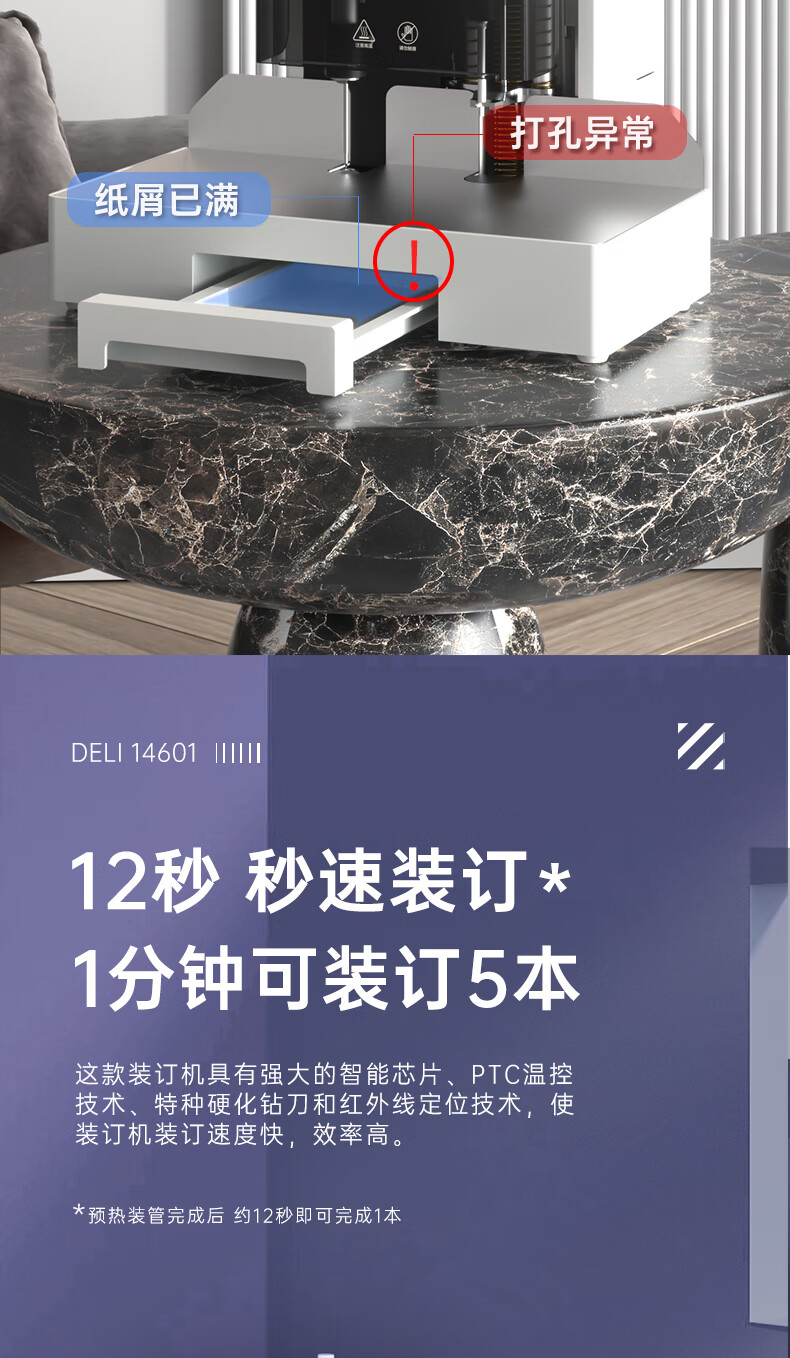 得力憑證裝訂機財務專用全自動智能激光辦公會計檔案熱熔鉚管裝訂 14660S【全自動】 智能狀態(tài)檢測50mm 全國聯(lián)保 標配