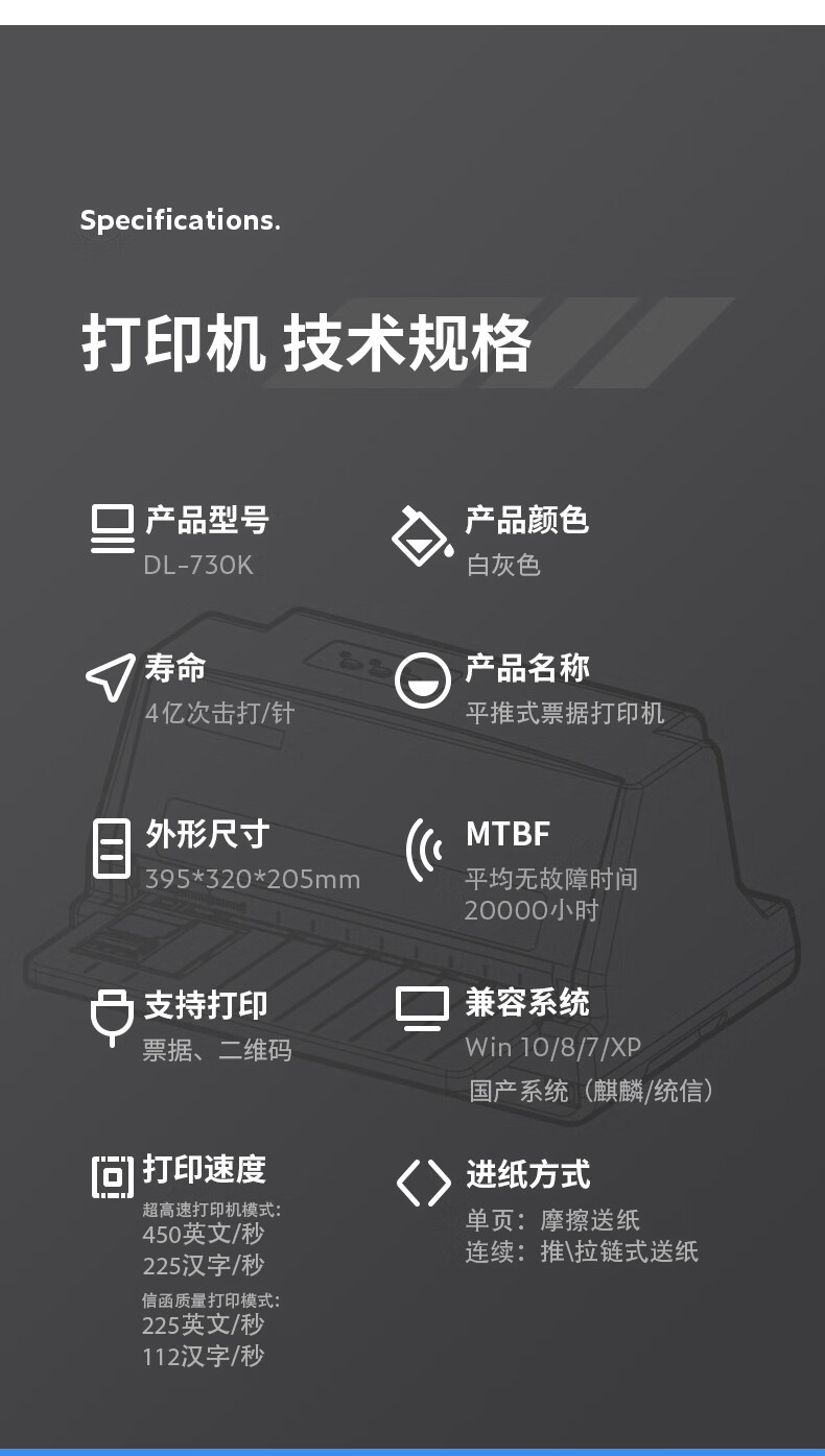 得力/deli DL-730K 票據(jù)打印機(jī) 發(fā)票針式打印機(jī) 快遞單打印(82列平推式)