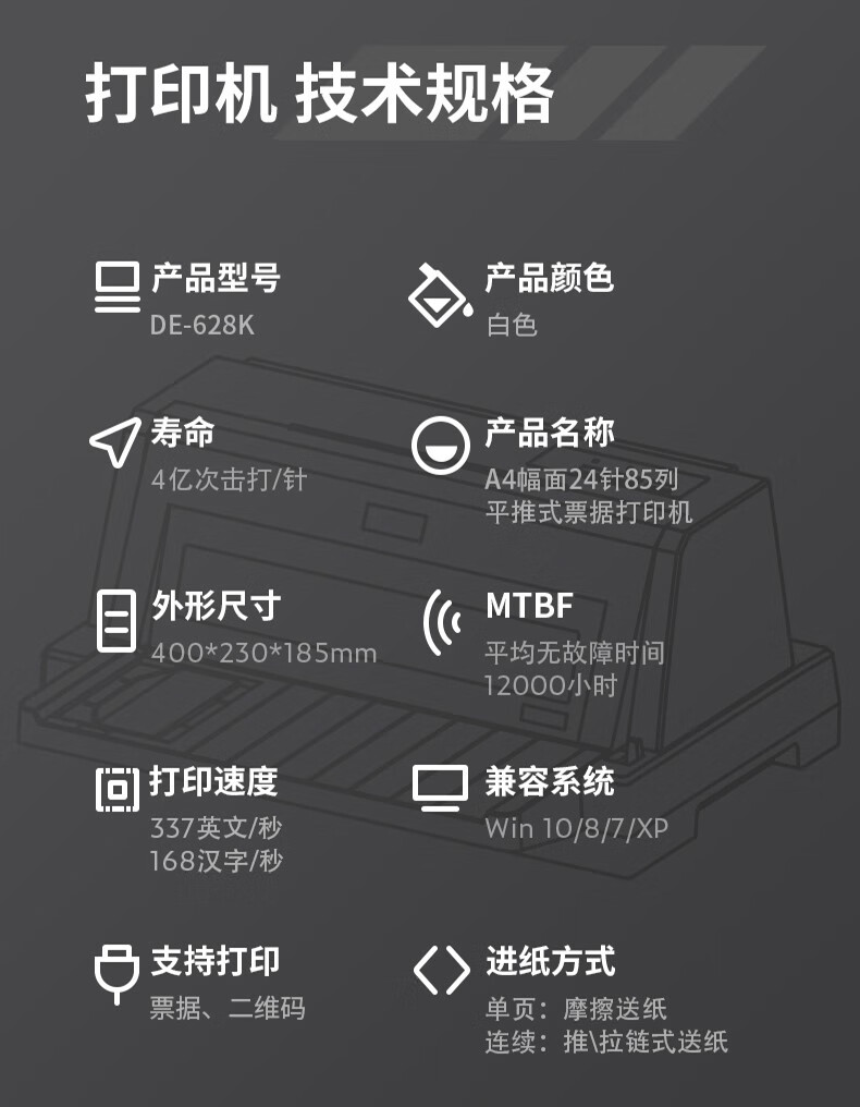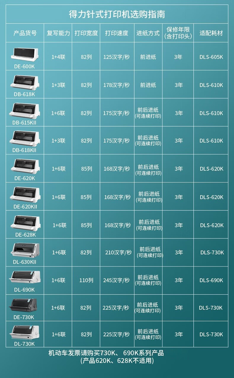 得力/deli DE-620K 票據(jù)打印機 1 6聯(lián)針式打印機 稅控發(fā)票打印機 85列 【7聯(lián)高速】前后進紙