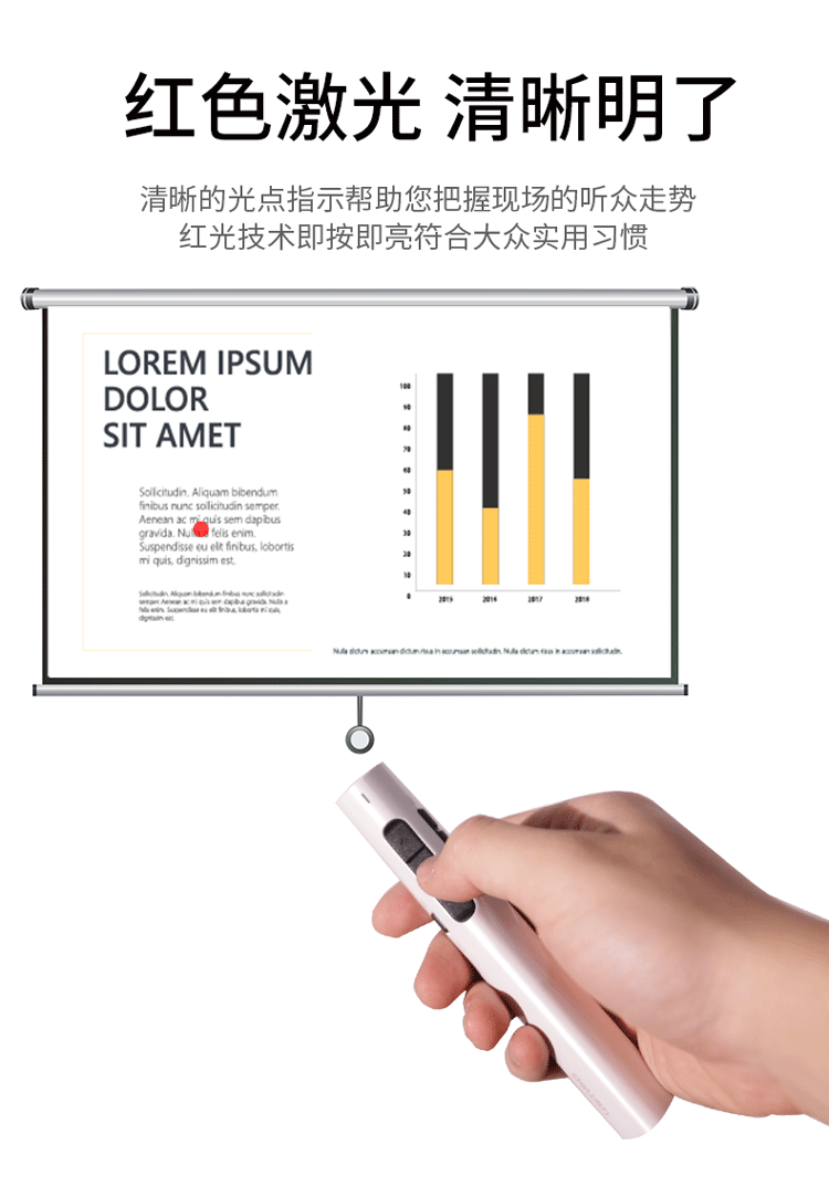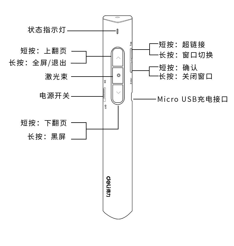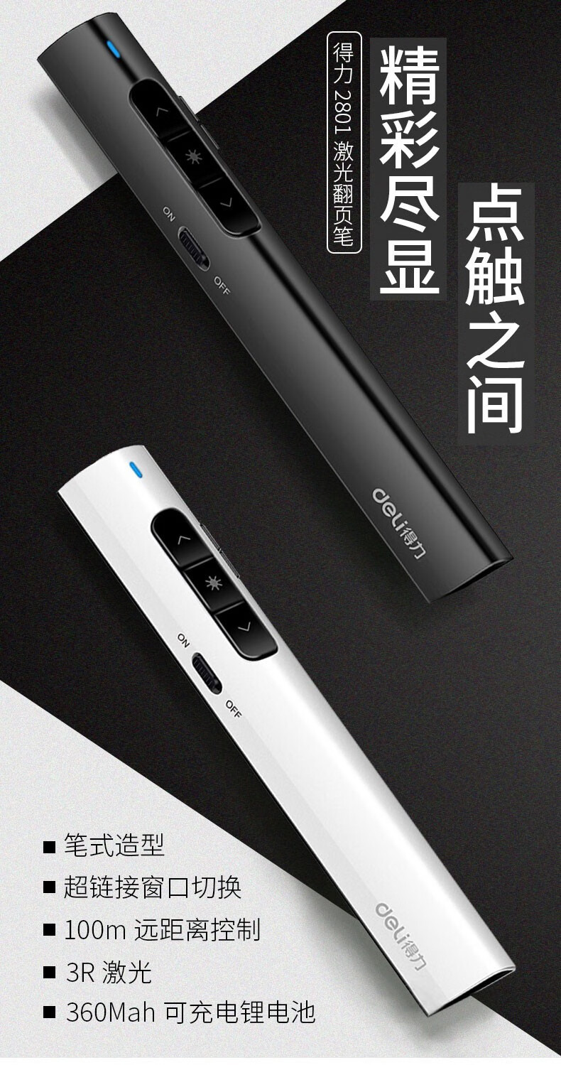 得力(deli) 激光筆一體式ppt投影儀演講翻頁筆演講筆多媒體教學(xué)教鞭筆投影筆演講器 2805灰色【紅光】100米遙控