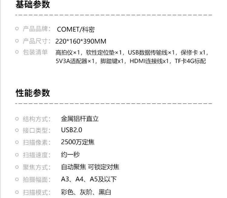 科密/Comet GP2318Z 高拍儀 2500萬像素 可在線升級掃描儀 A3A4文件資料照片證件 HDMI接口