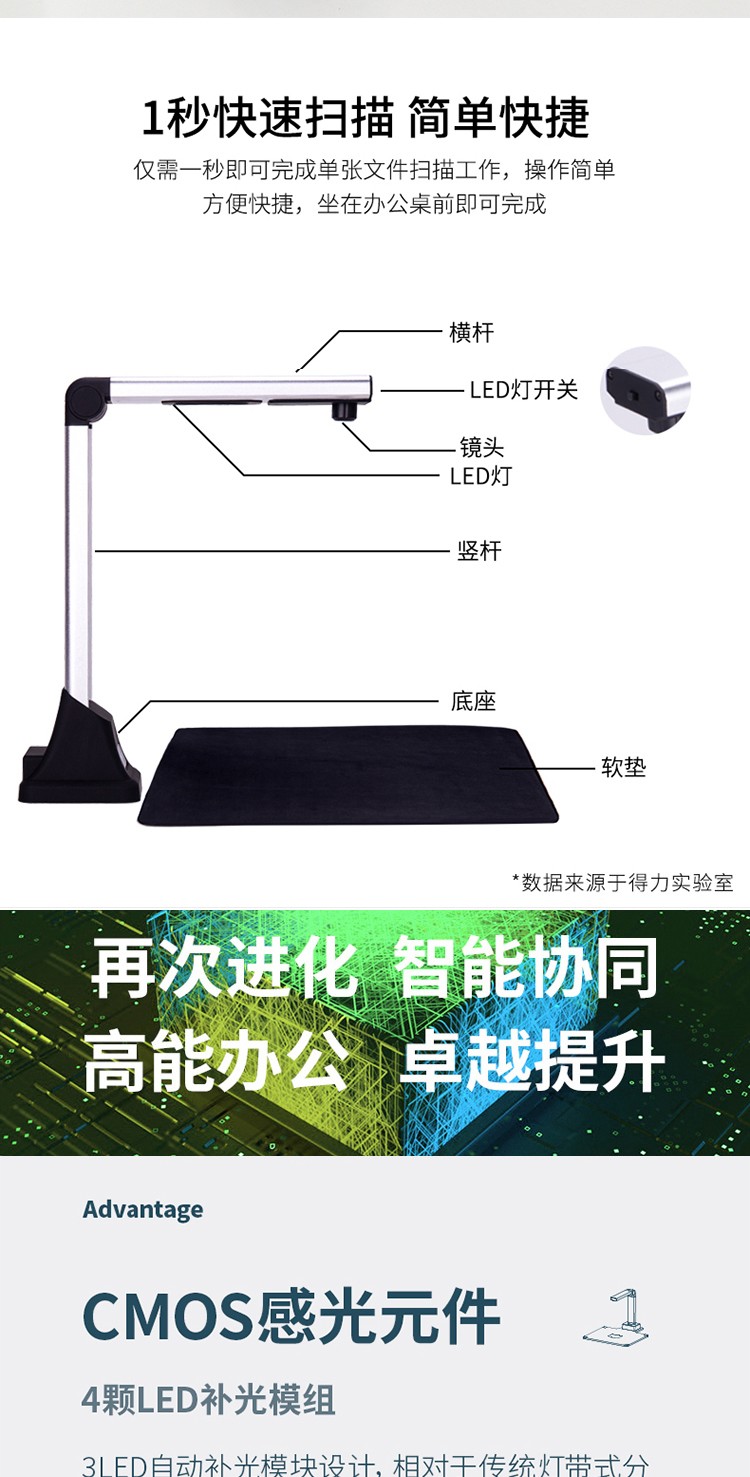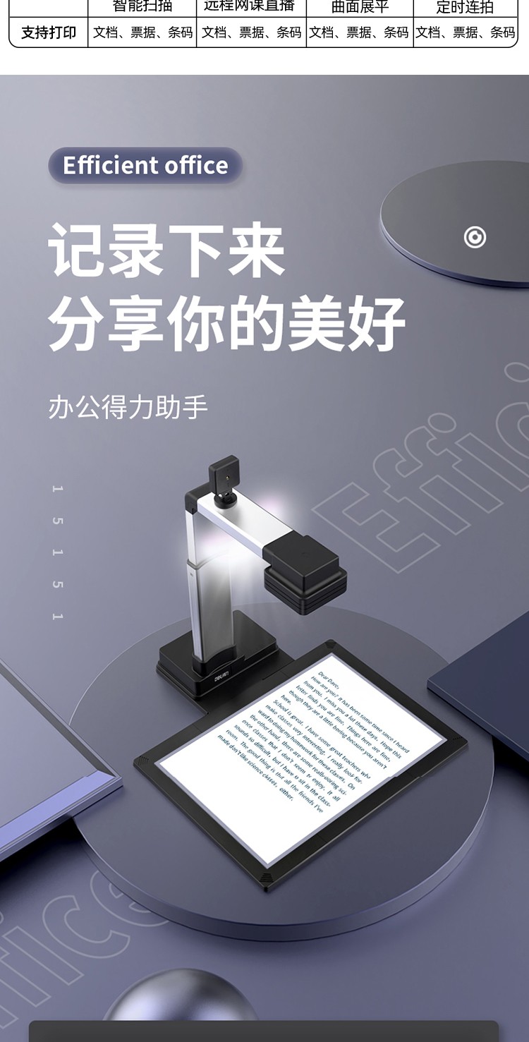 得力/deli 15157 高拍儀 A4/A3幅面高清高速掃描儀帶身份證識(shí)別文件試卷檔案高速掃描儀圖文轉(zhuǎn)換 1500萬(wàn)像素自動(dòng)對(duì)焦高清投影 A4幅面15157