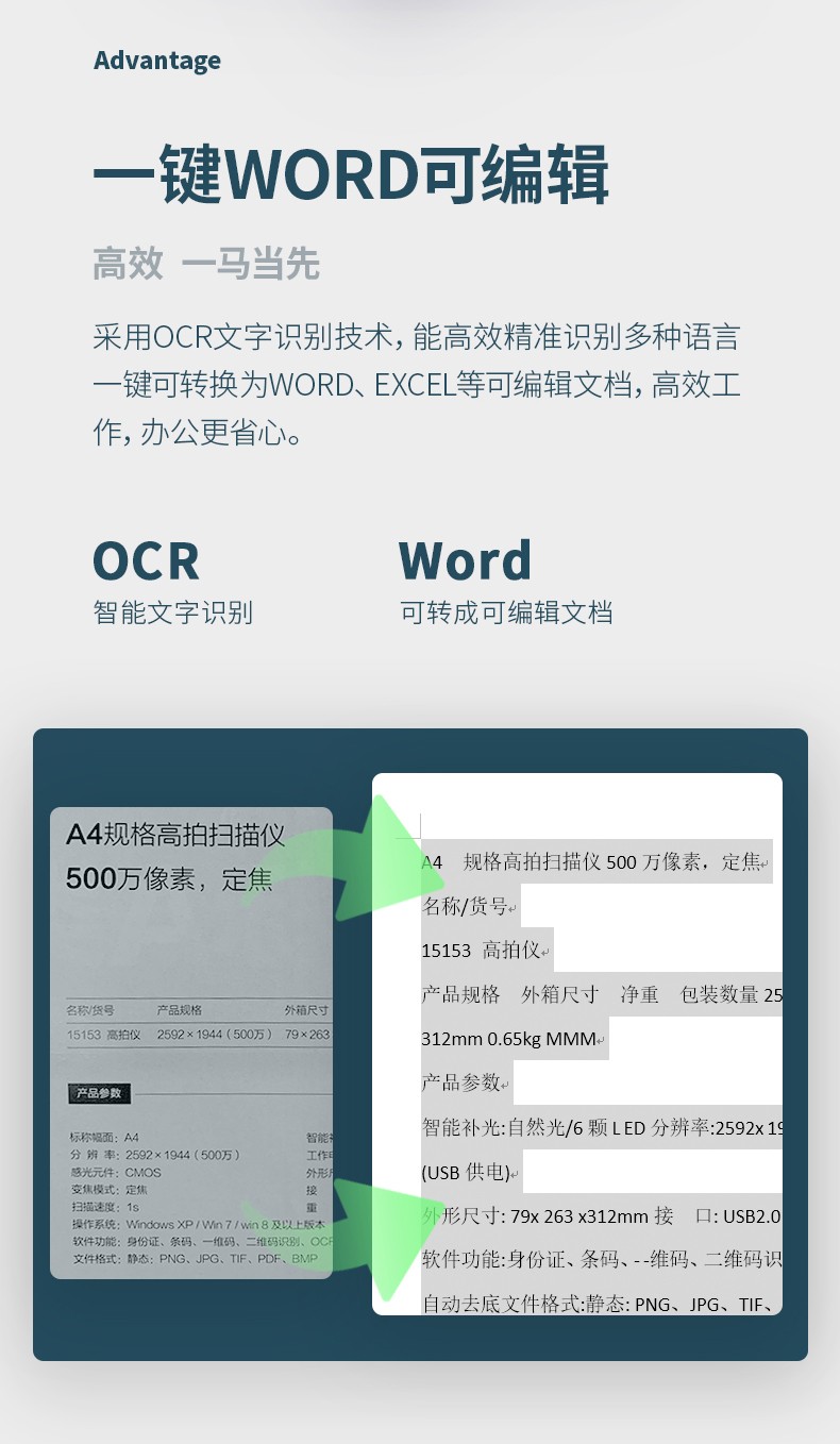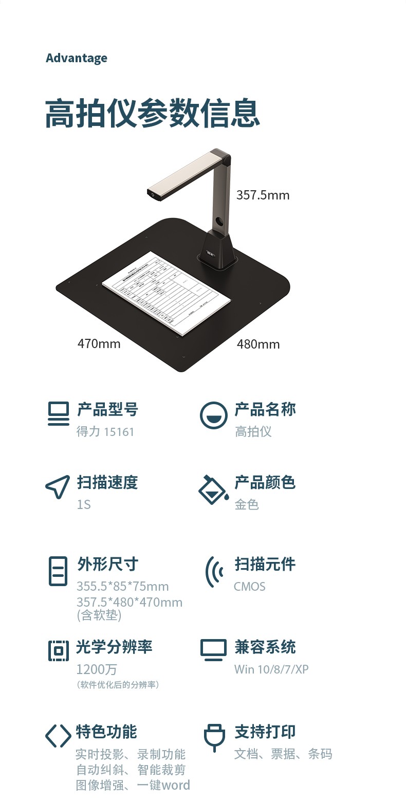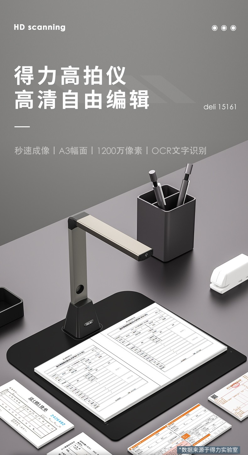 得力/deli 15161 高拍儀 智能高拍儀A3高清高速掃描儀1200萬像素 商用辦公文件文檔試卷資料 自動(dòng)對(duì)焦掃描儀