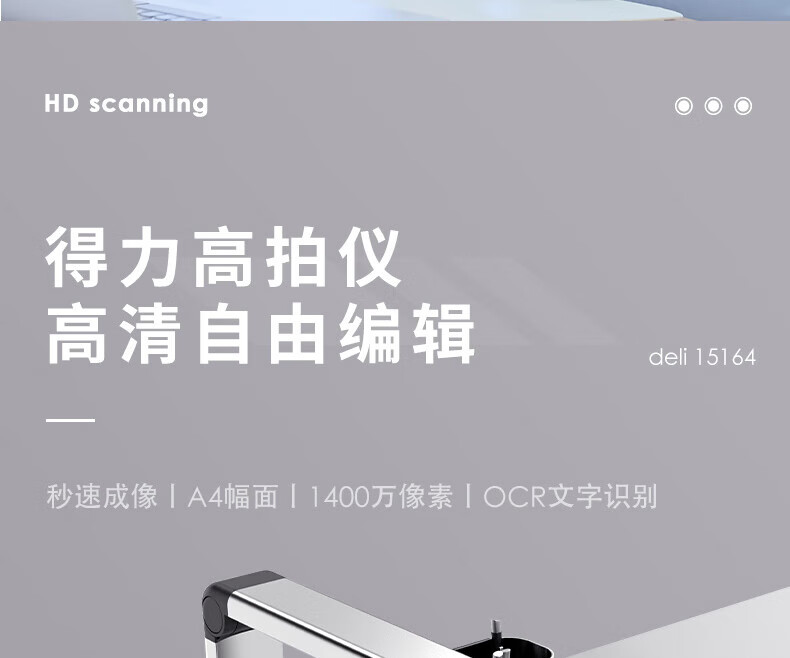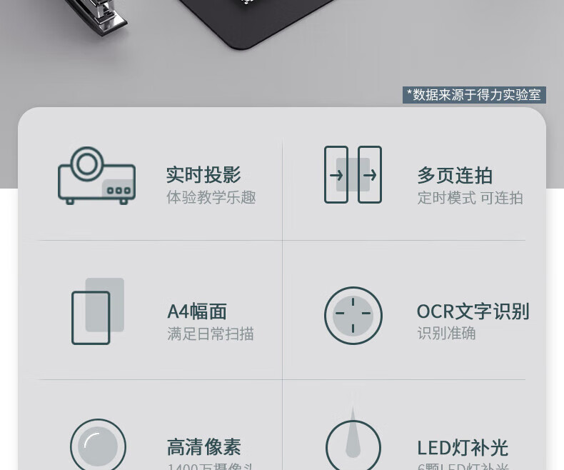 得力高拍儀千萬高清像素A4幅面軟底文檔證件掃描連續(xù)掃描自動糾偏 1800萬-A4硬底-OCR識別