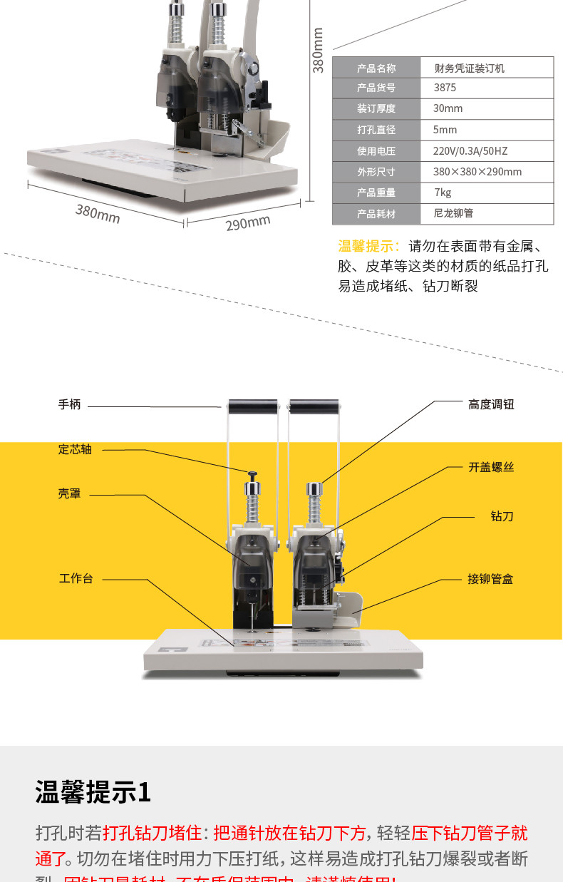 得力(deli)3875裝訂機(jī)財務(wù)憑據(jù)憑證裝訂機(jī)會計專用手動打孔機(jī)熱熔鉚管膠裝機(jī)辦公用品