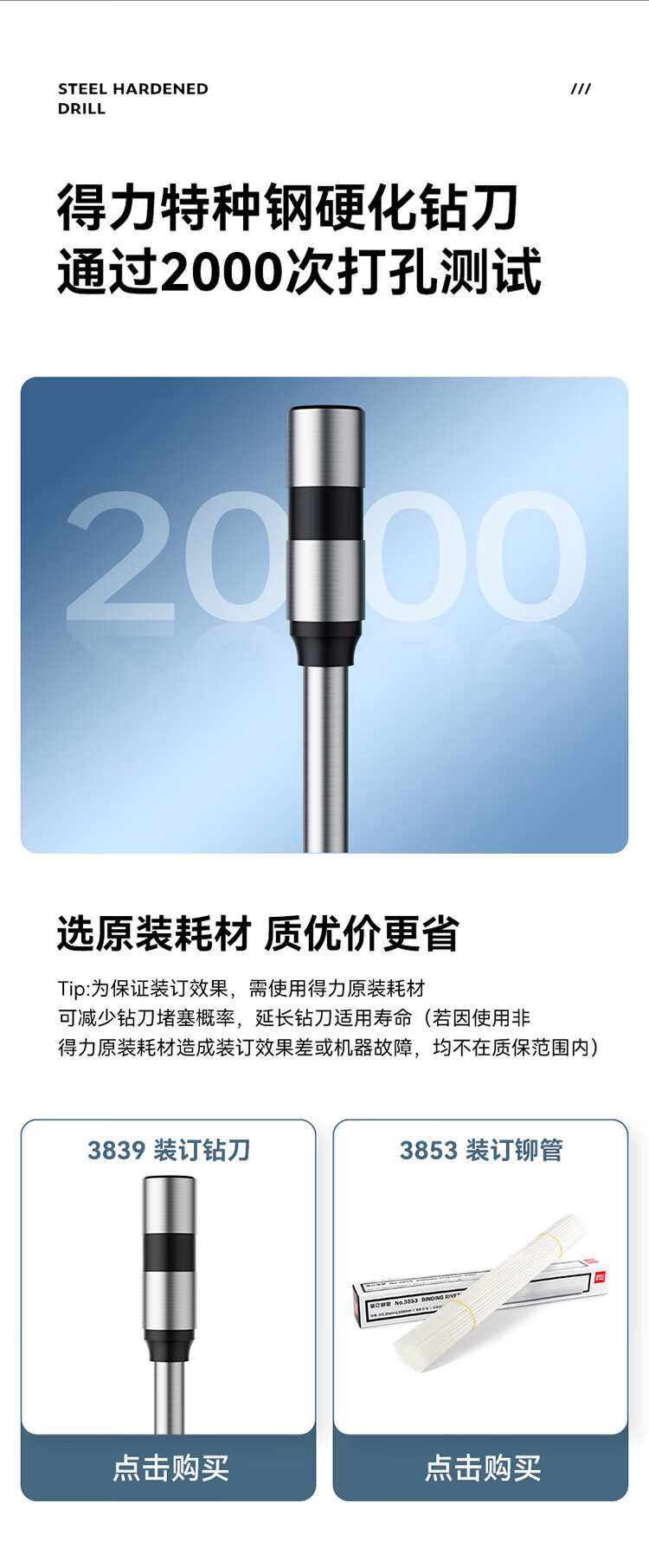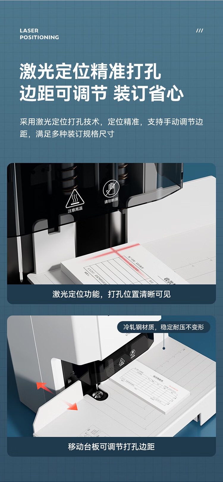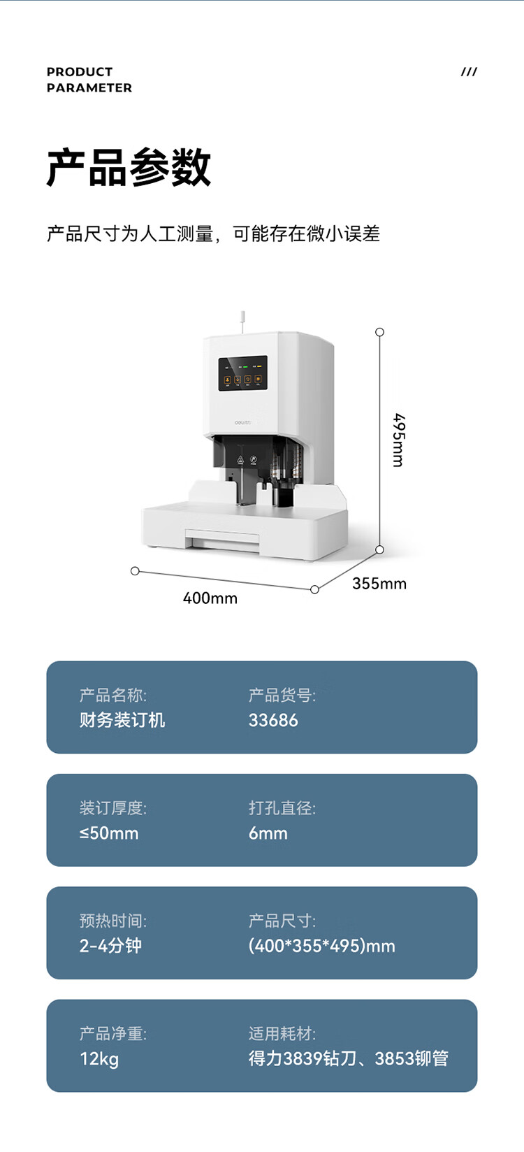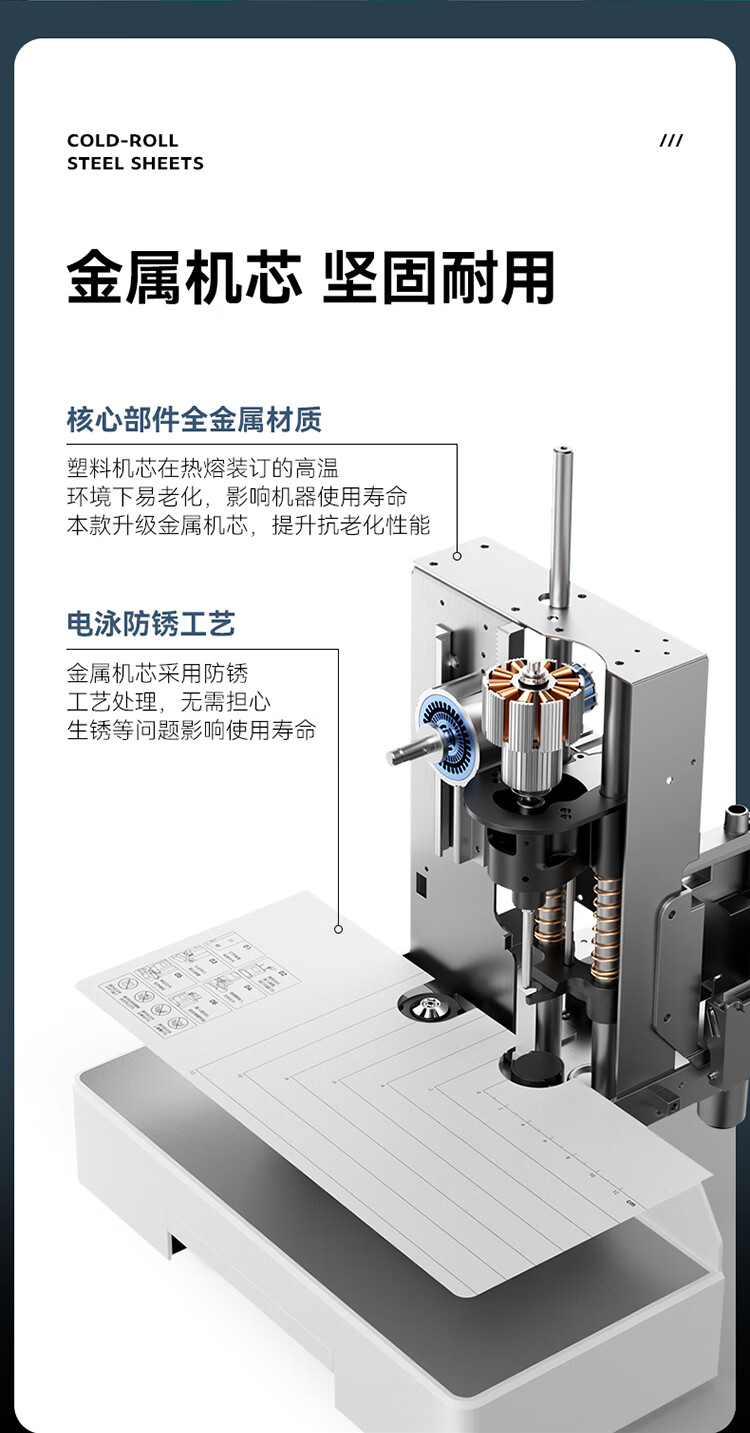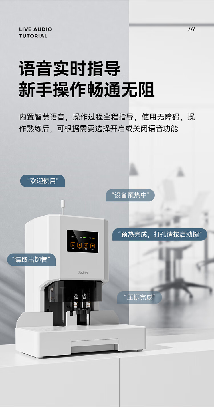 得力/deli 33686 裝訂及打孔類 50mm自動財務憑證鉚管裝訂機 會計裝訂機文件資料熱熔膠管打孔機 【500頁】激光精準定位