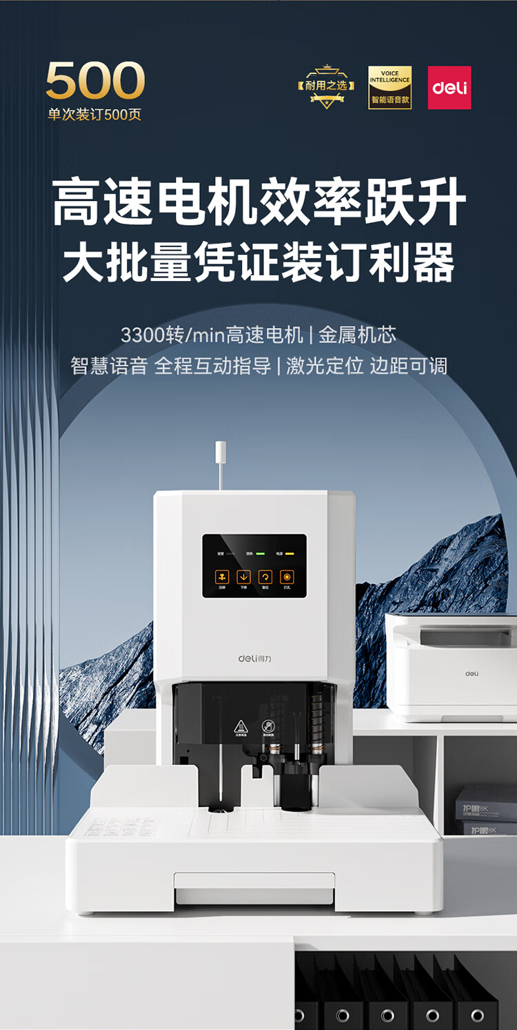 得力(deli)50mm自動財務憑證鉚管裝訂機 會計裝訂機文件資料熱熔膠管打孔機 【500頁】激光精準定位