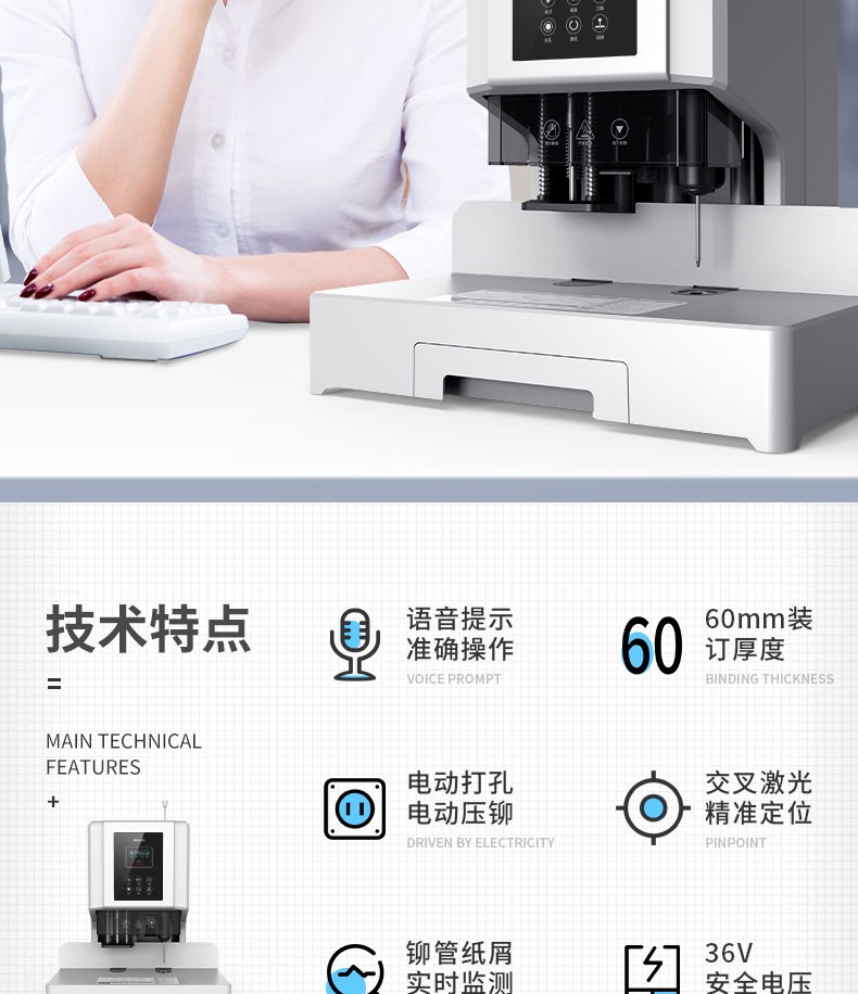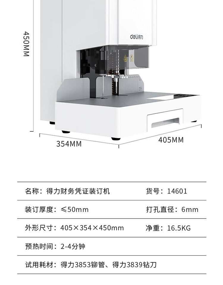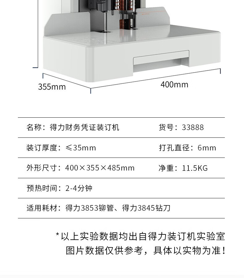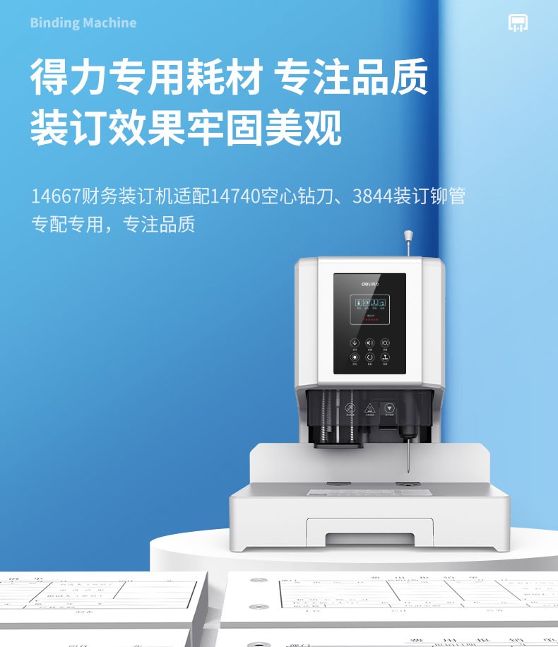 得力/deli 33888 裝訂及打孔類 財(cái)務(wù)憑證裝訂機(jī) 會(huì)計(jì)憑證單據(jù)文件資料檔案打孔機(jī) 熱熔鉚管裝訂機(jī) 350頁 自動(dòng)鉚管裝訂