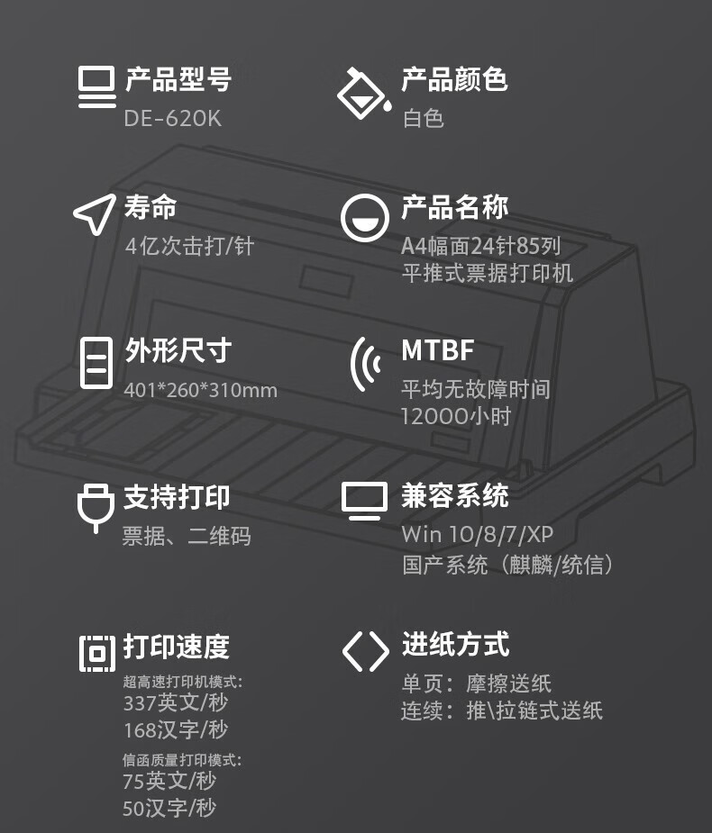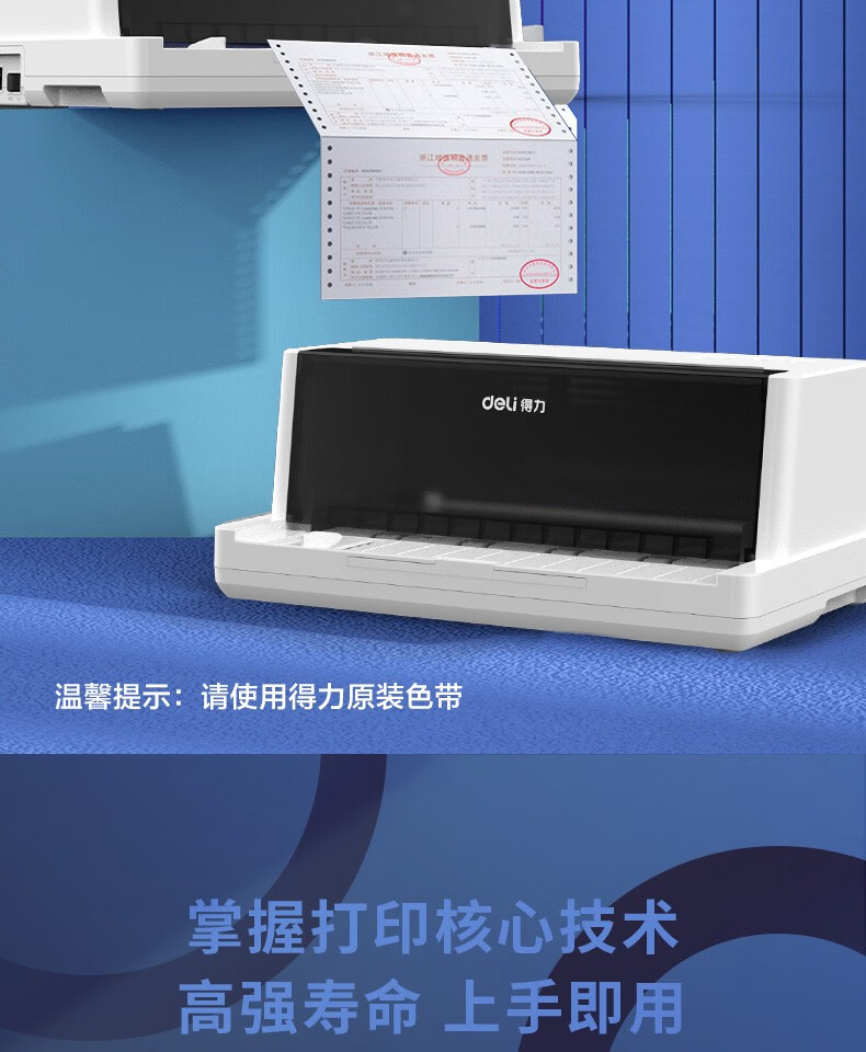 得力(deli) 針式打印機 營改增稅控發(fā)票打印機 票據(jù)電子面單快遞單條碼 發(fā)貨出庫打印機 DE-628K【7聯(lián)85列】前后進紙