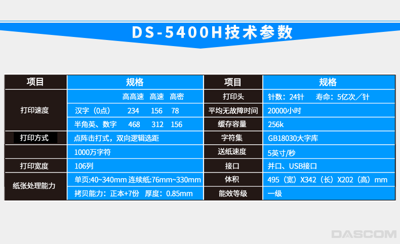 得實(Dascom)DS-5400H 高性能專業(yè)24針票據(jù)/證卡打印機支持國產(chǎn)麒麟統(tǒng)信系統(tǒng)