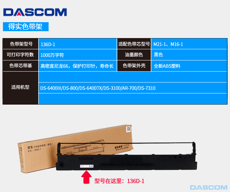 得實(shí)/DASCOM 136D-1 色帶、碳帶 色帶架 適用DS-3100\DS-6400III\DS-800