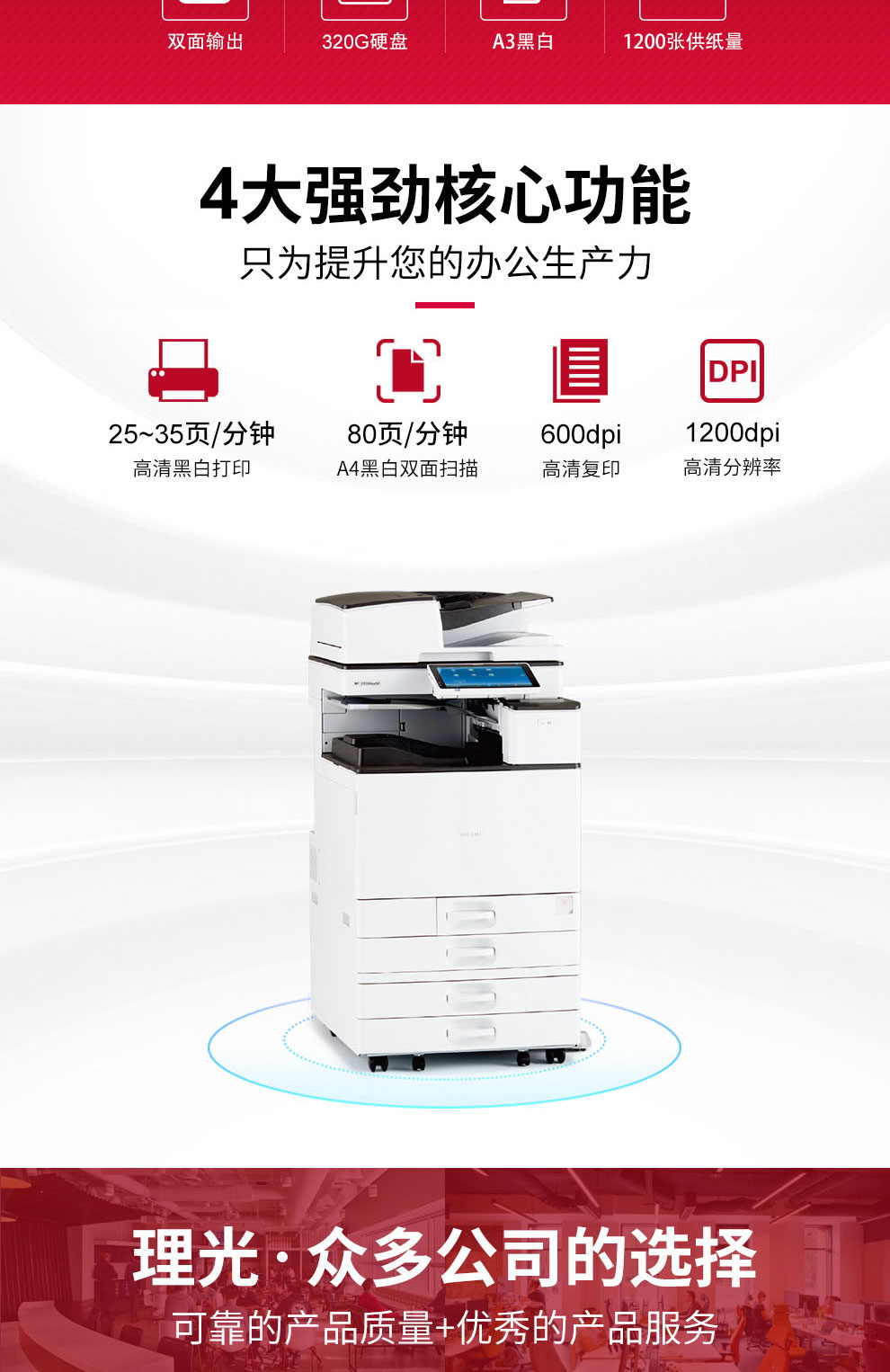 理光/RICOH MP 3055SP A3 黑白打印機 黑白A3打印機 復印機 復合機 網(wǎng)絡(luò)彩色掃描 (30頁/分鐘) 雙紙盒+雙面輸稿器